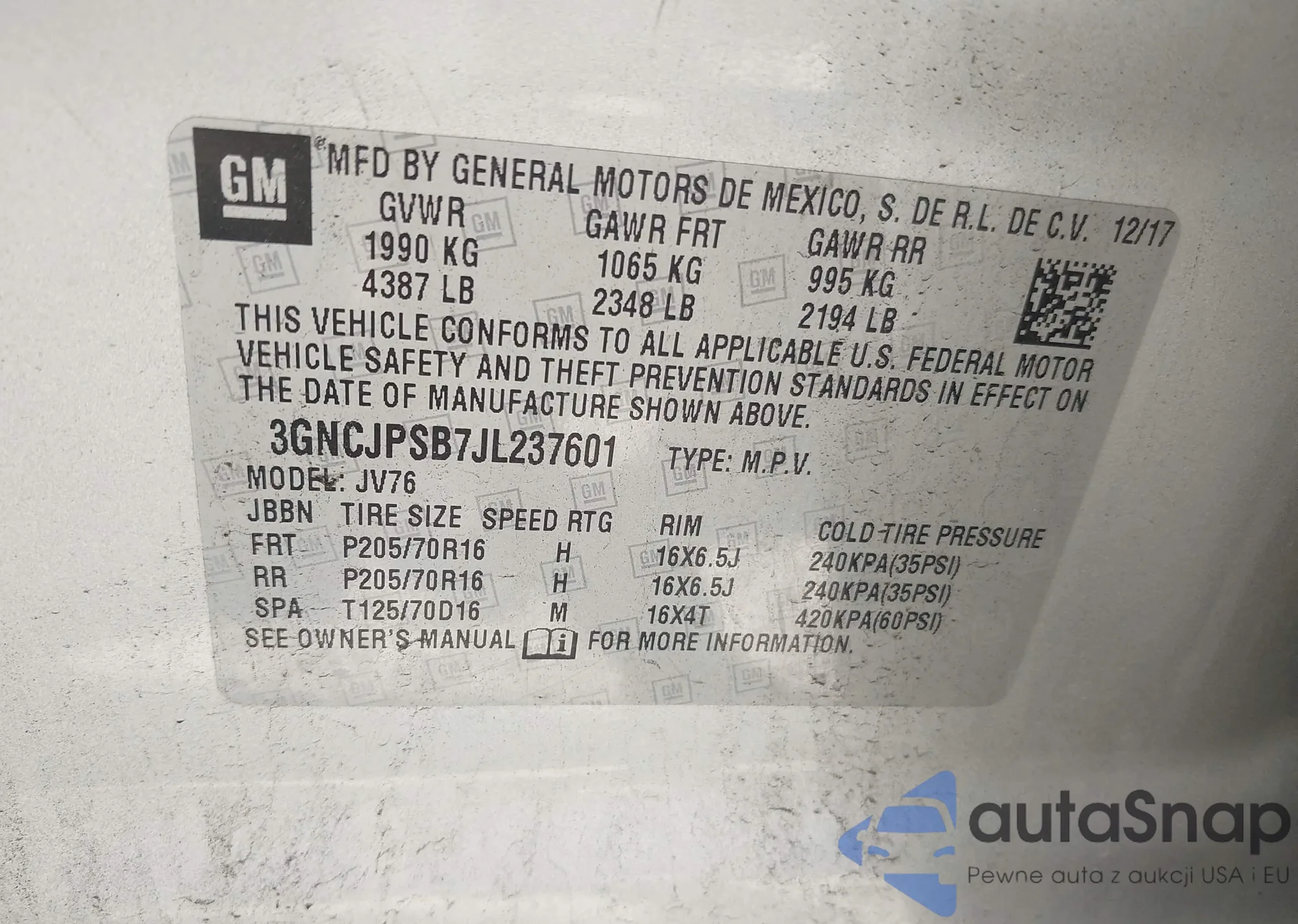 • VIN 3GNCJPSB7JL237601