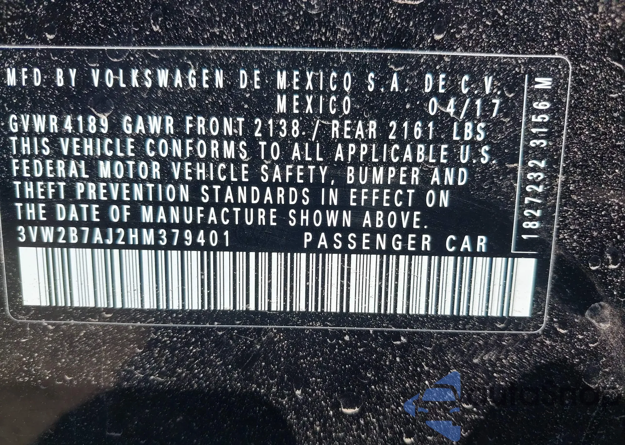 • VIN 3VW2B7AJ2HM379401
