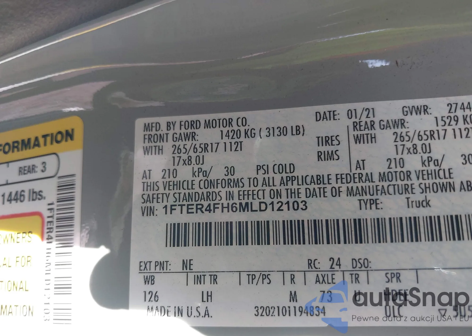 LOT: 43609216 VIN: 1FTER4FH6MLD12103