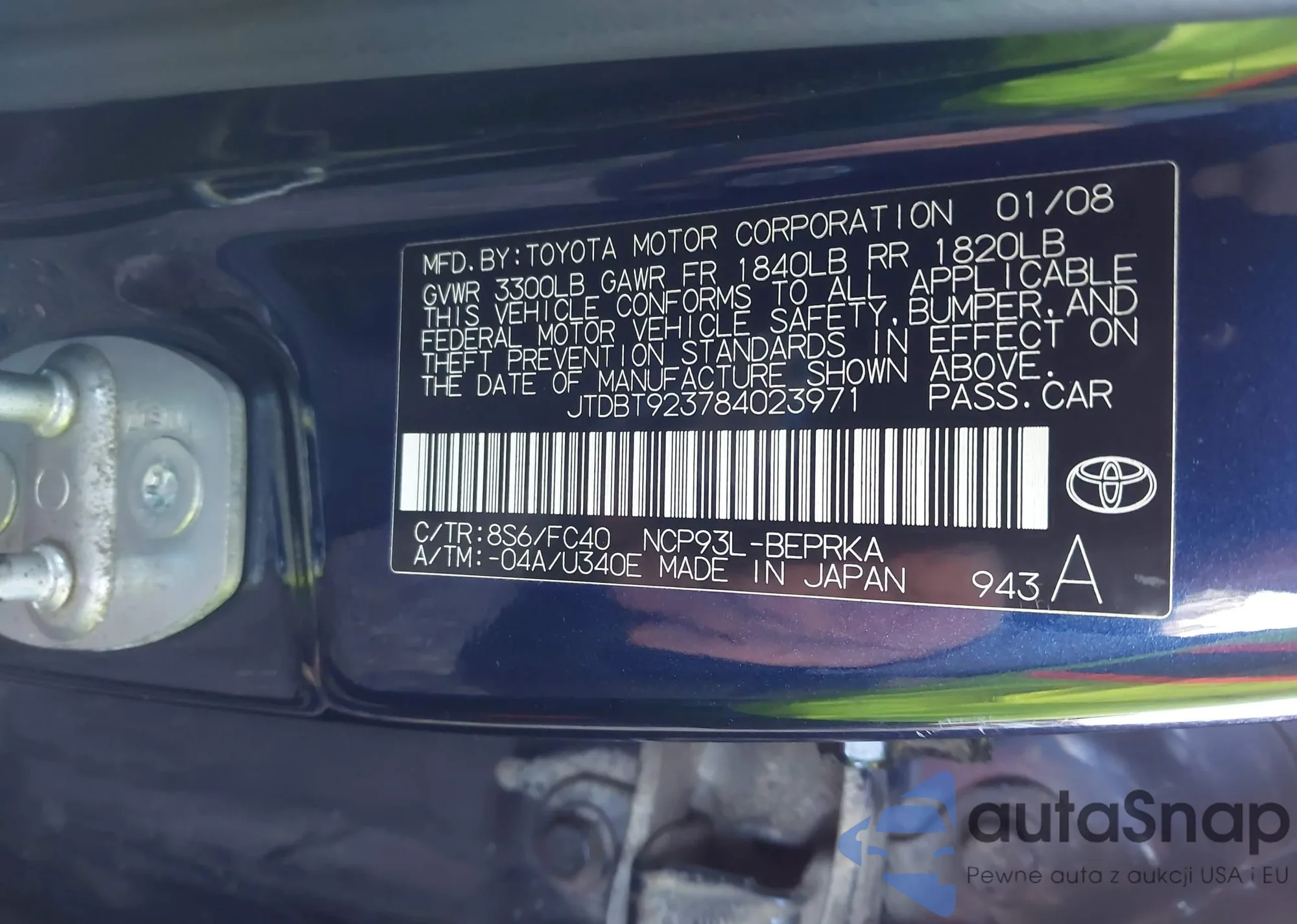LOT: 43614334 VIN: JTDBT923784023971