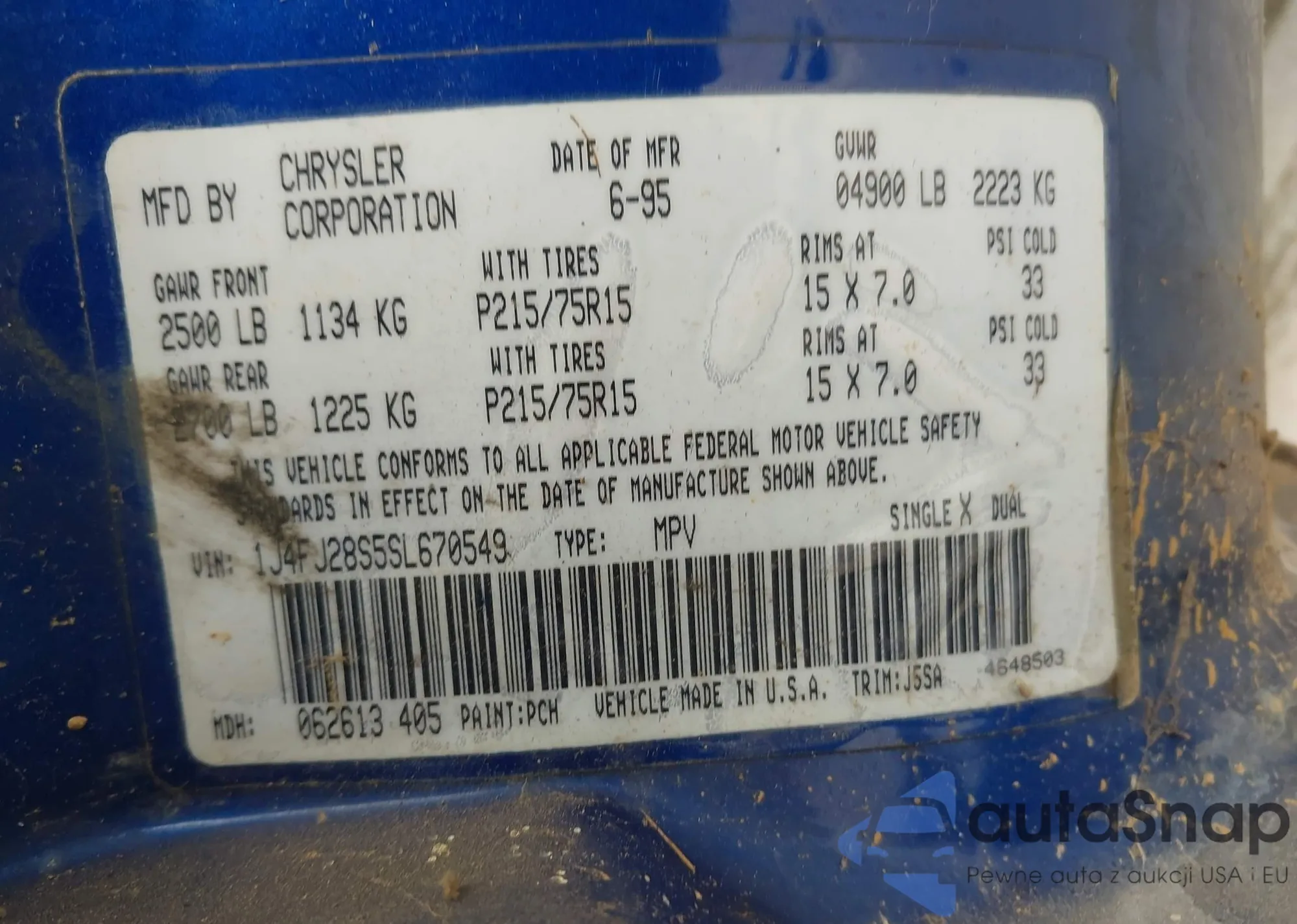 • VIN 1J4FJ28S5SL670549