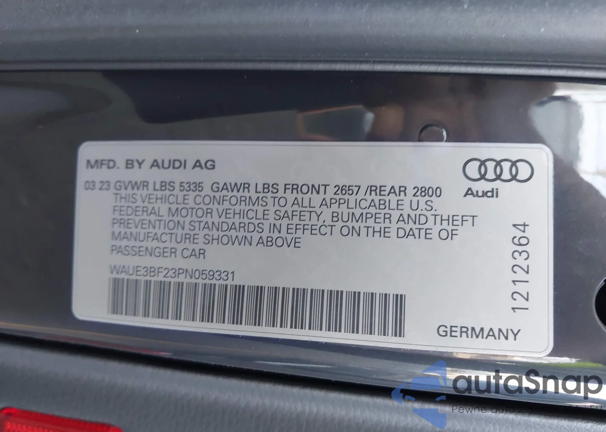 LOT: 42929197 VIN: WAUE3BF23PN059331