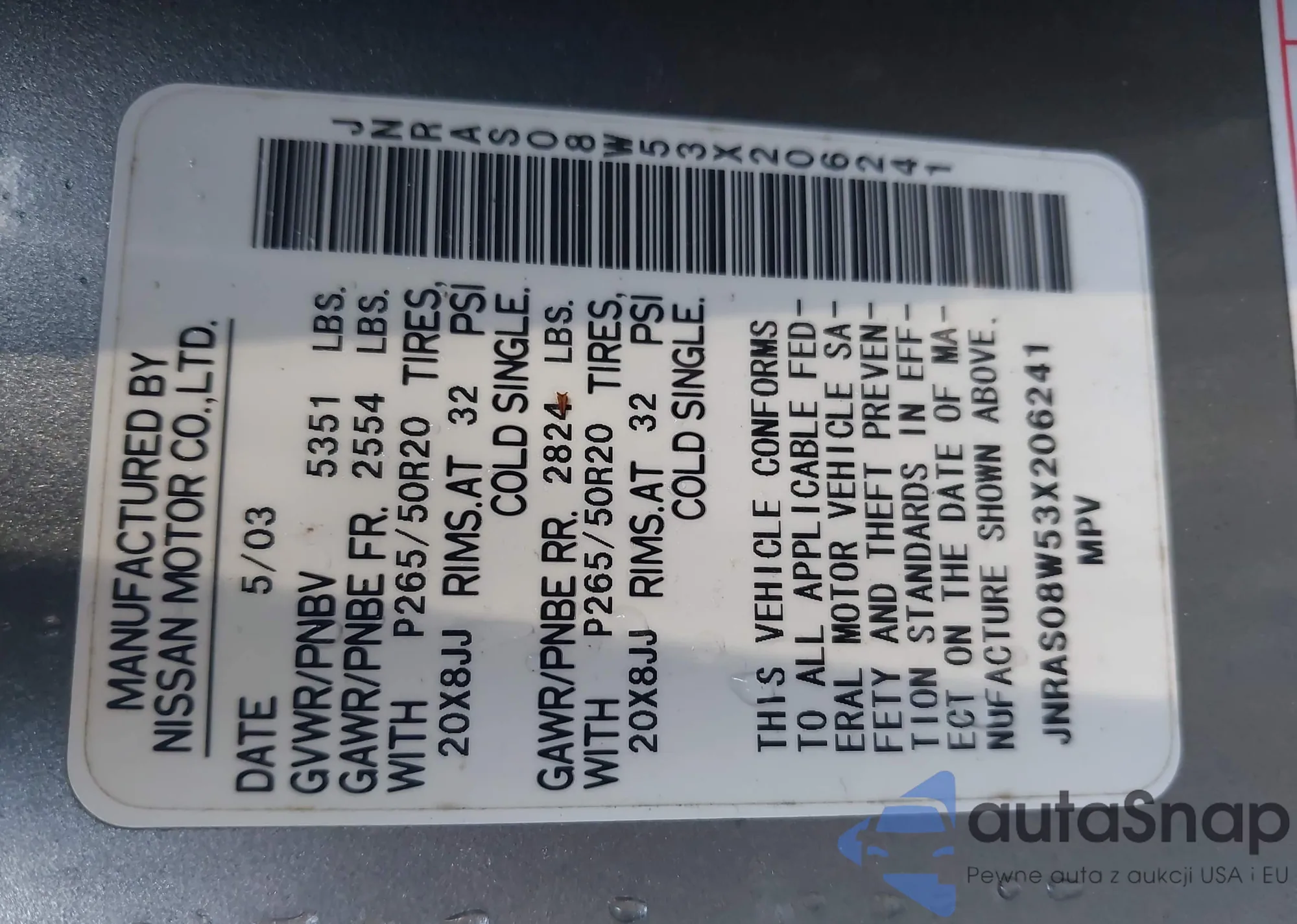 LOT: 42240904 VIN: JN1EV7APXMM700248