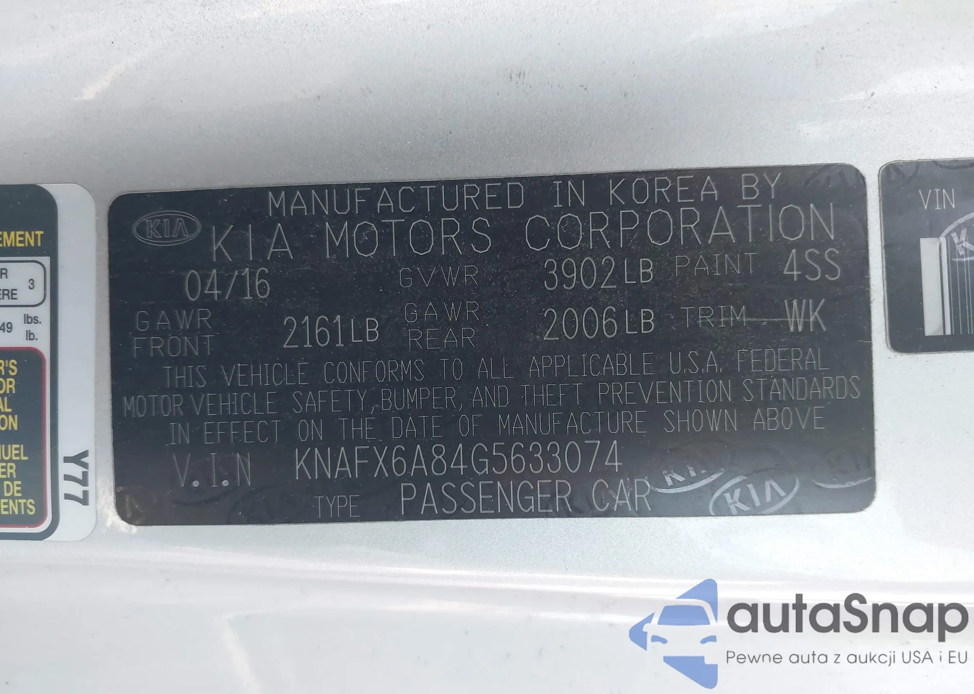 • VIN KNAFX6A84G5633074