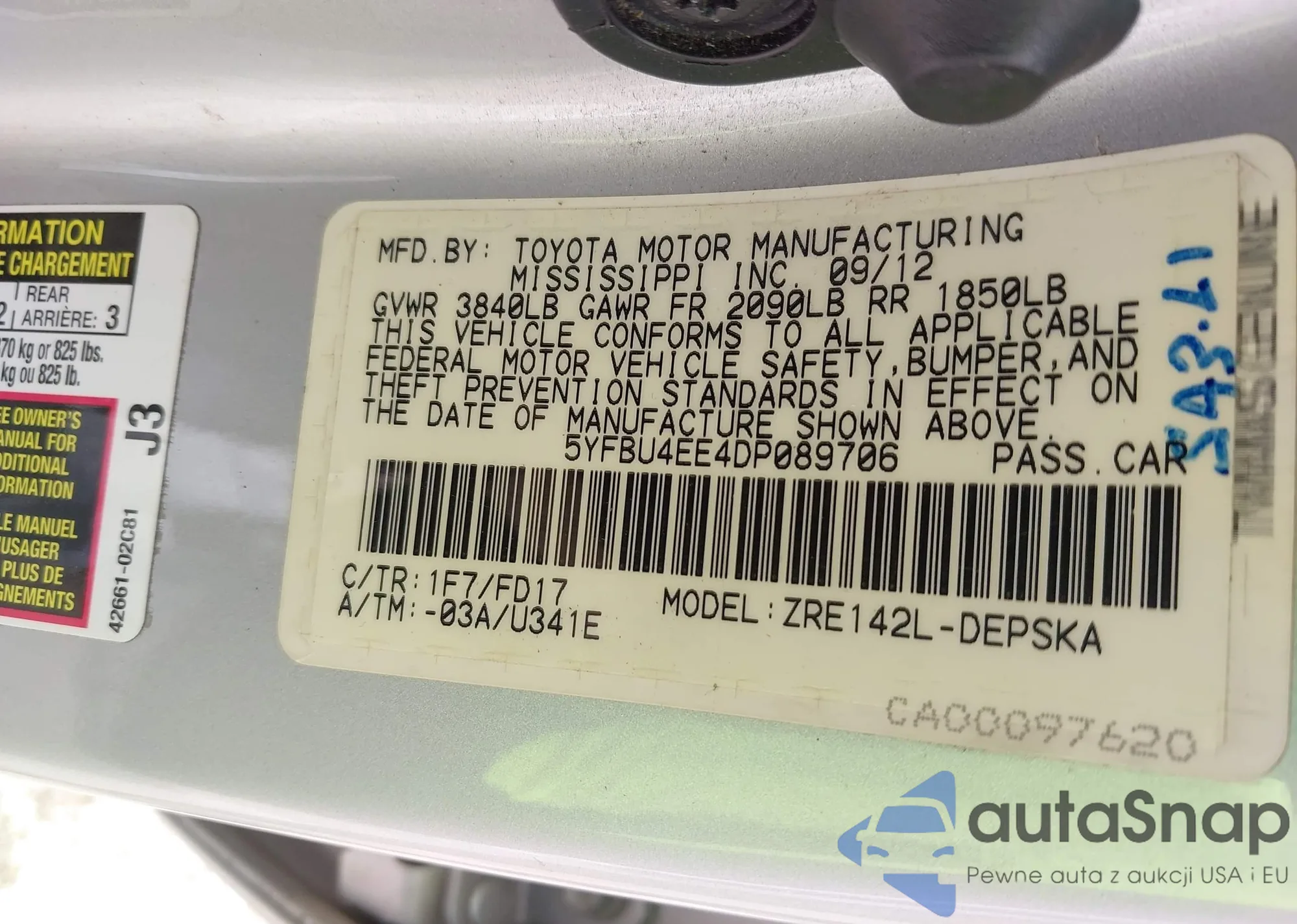 LOT: 42520898 VIN: 5YFBU4EE4DP089706