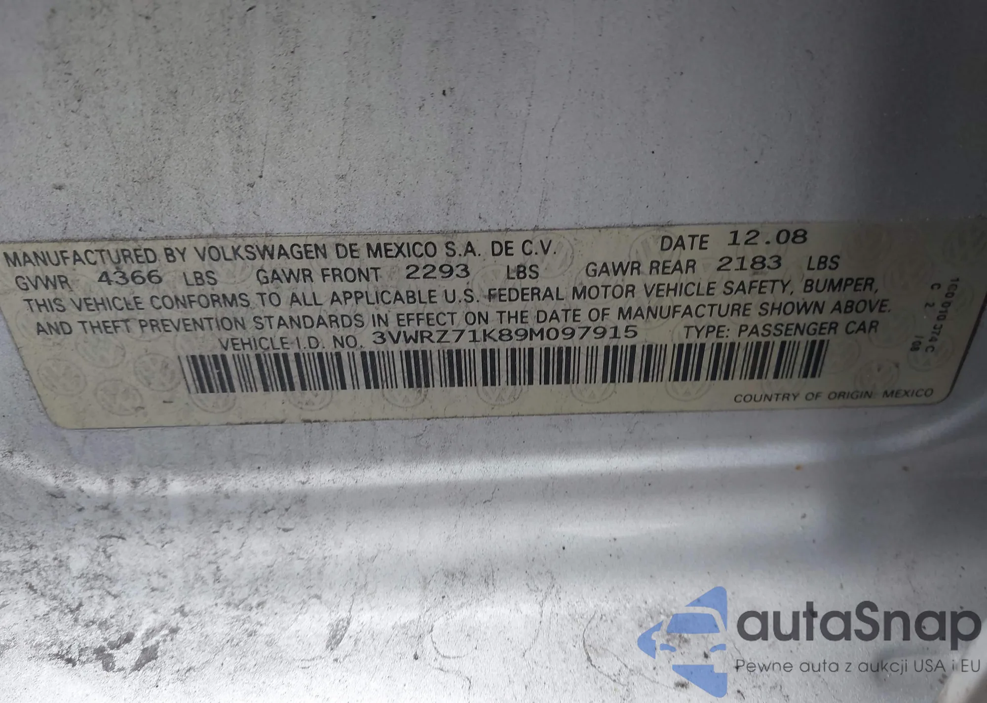 • VIN WAUE3BF23PN059331