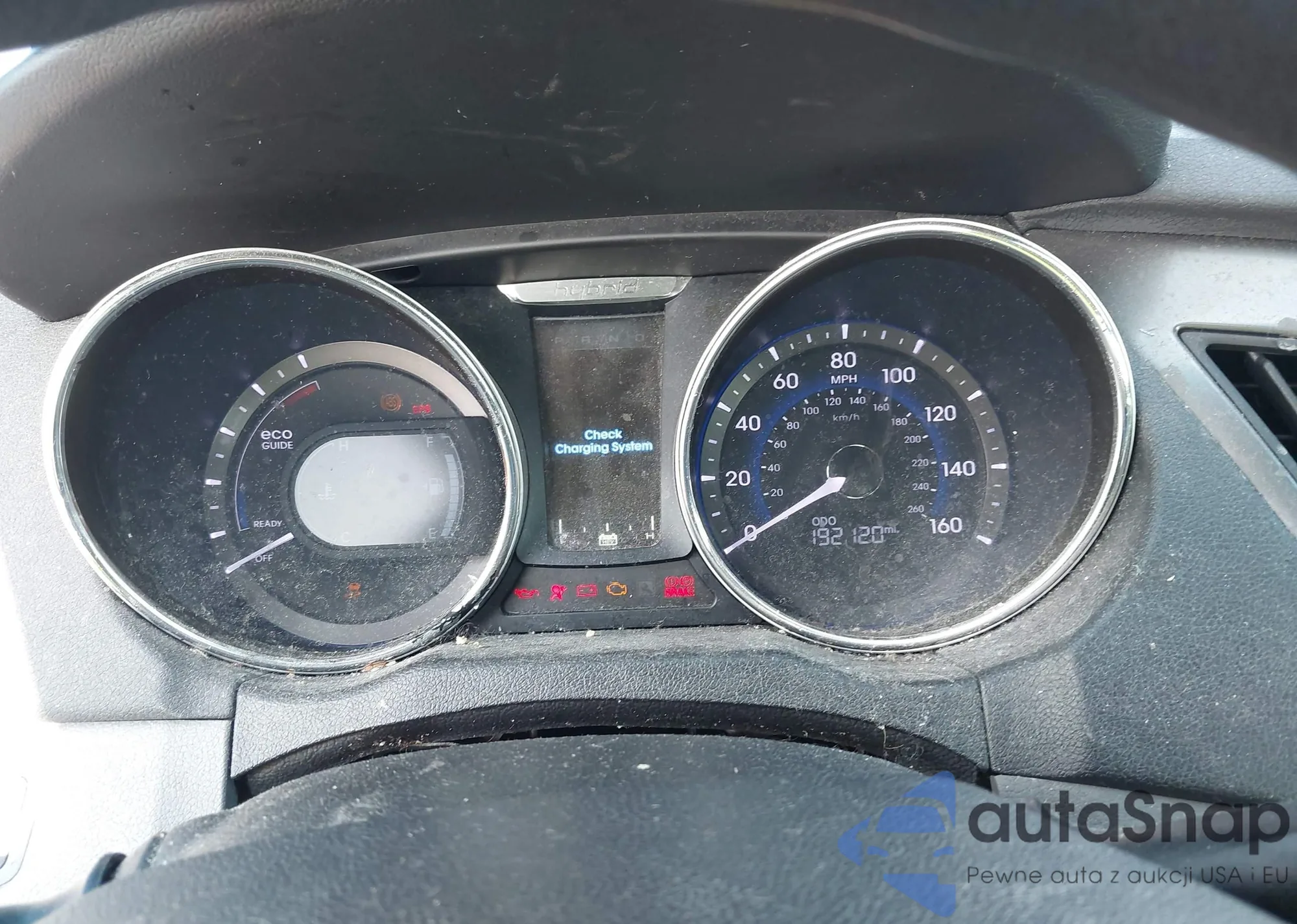 2013 Hyundai Sonata Hybrid z USA, uszkodzony, nr VIN KMHEC4A43DA083828