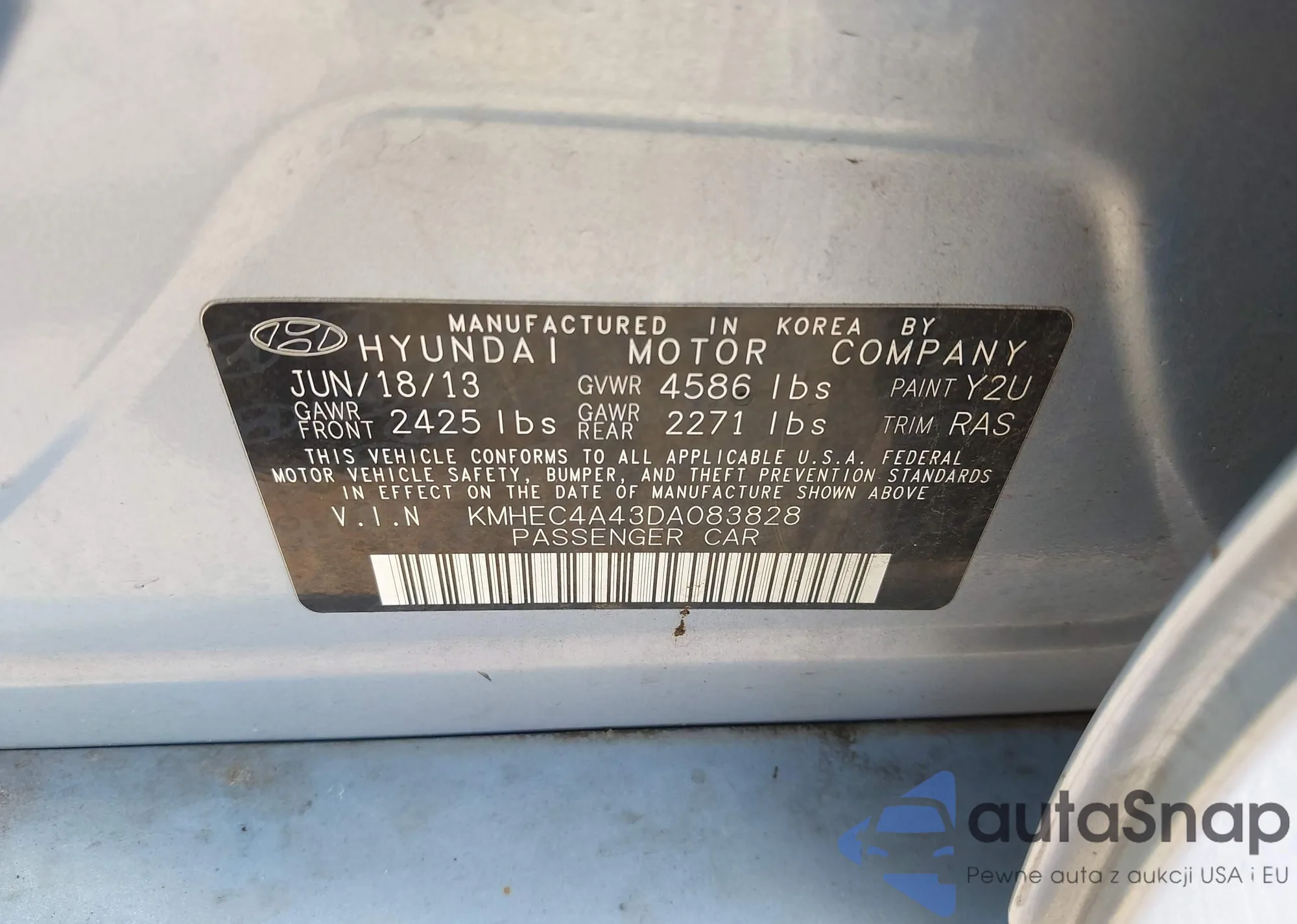 LOT: 43015462 VIN: KMHEC4A43DA083828