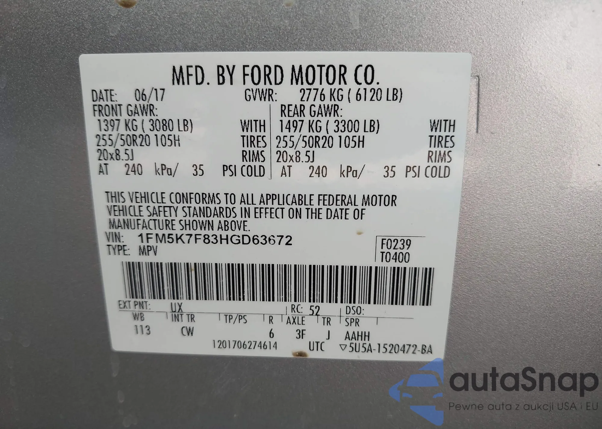 LOT: 43347877 VIN: KNAGT4LC8H5005137