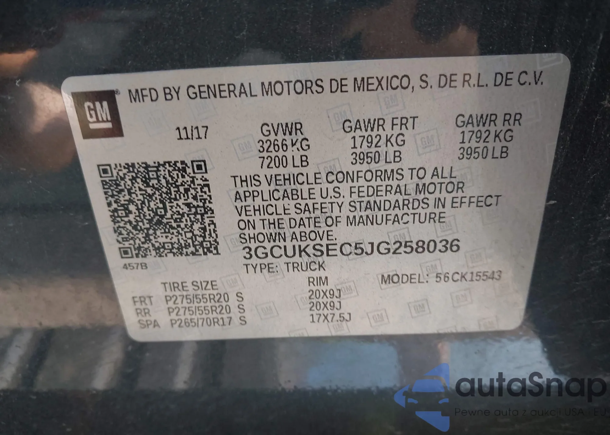 LOT: 43254963 VIN: 3GCUKSEC5JG258036