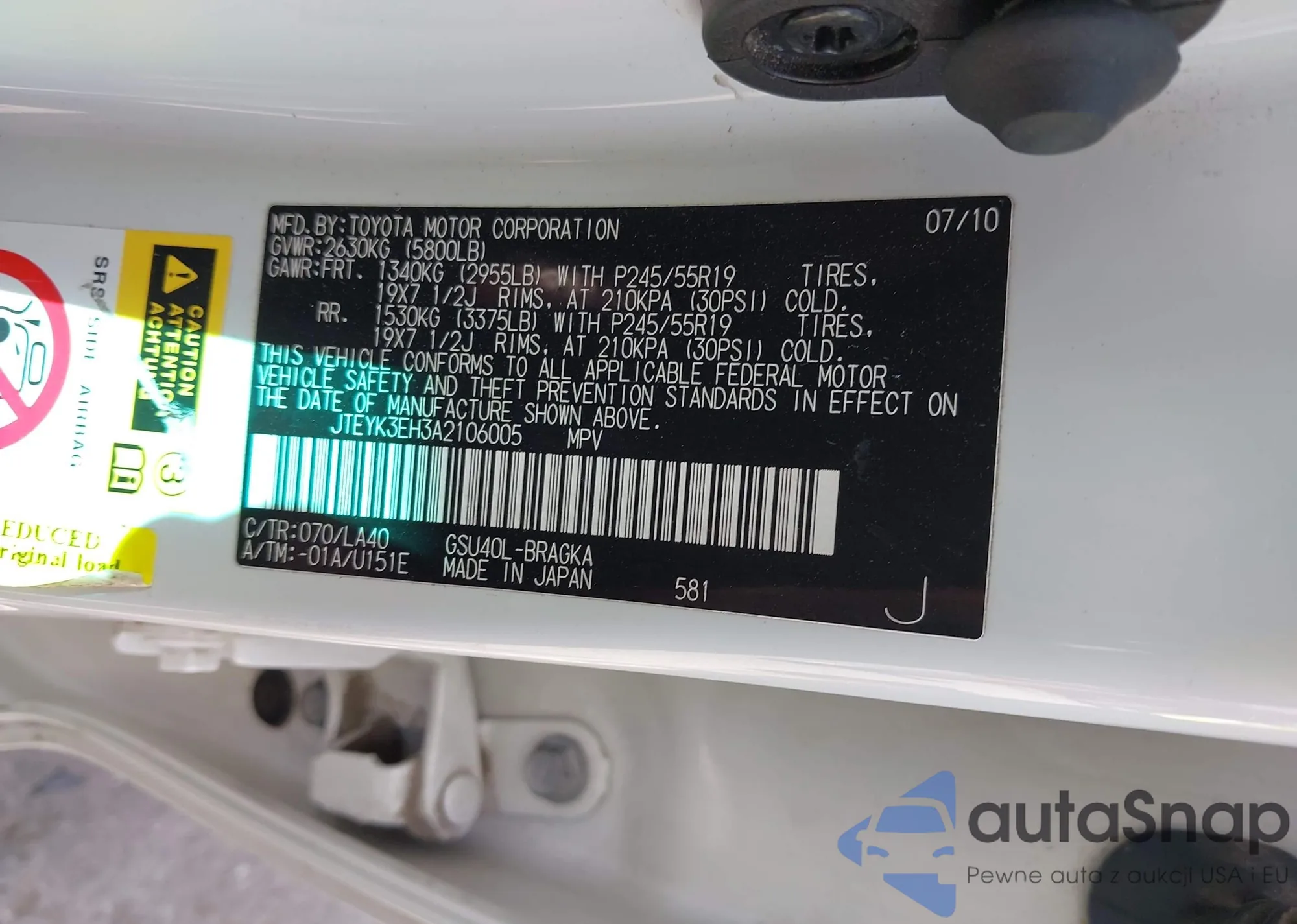 LOT: 43250702 VIN: JTNB11HK5J3031807