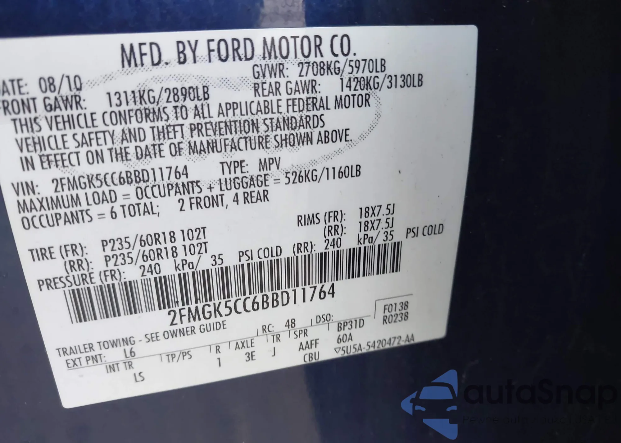• VIN 2FMGK5CC6BBD11764