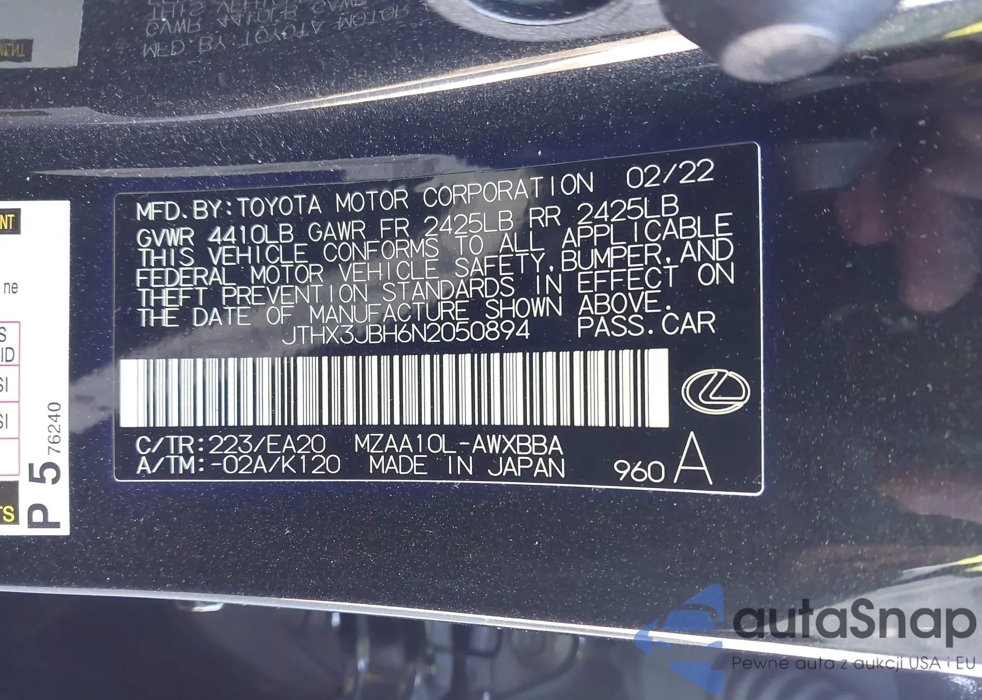 LOT: 43313439 VIN: JN1EV7BR1MM756126