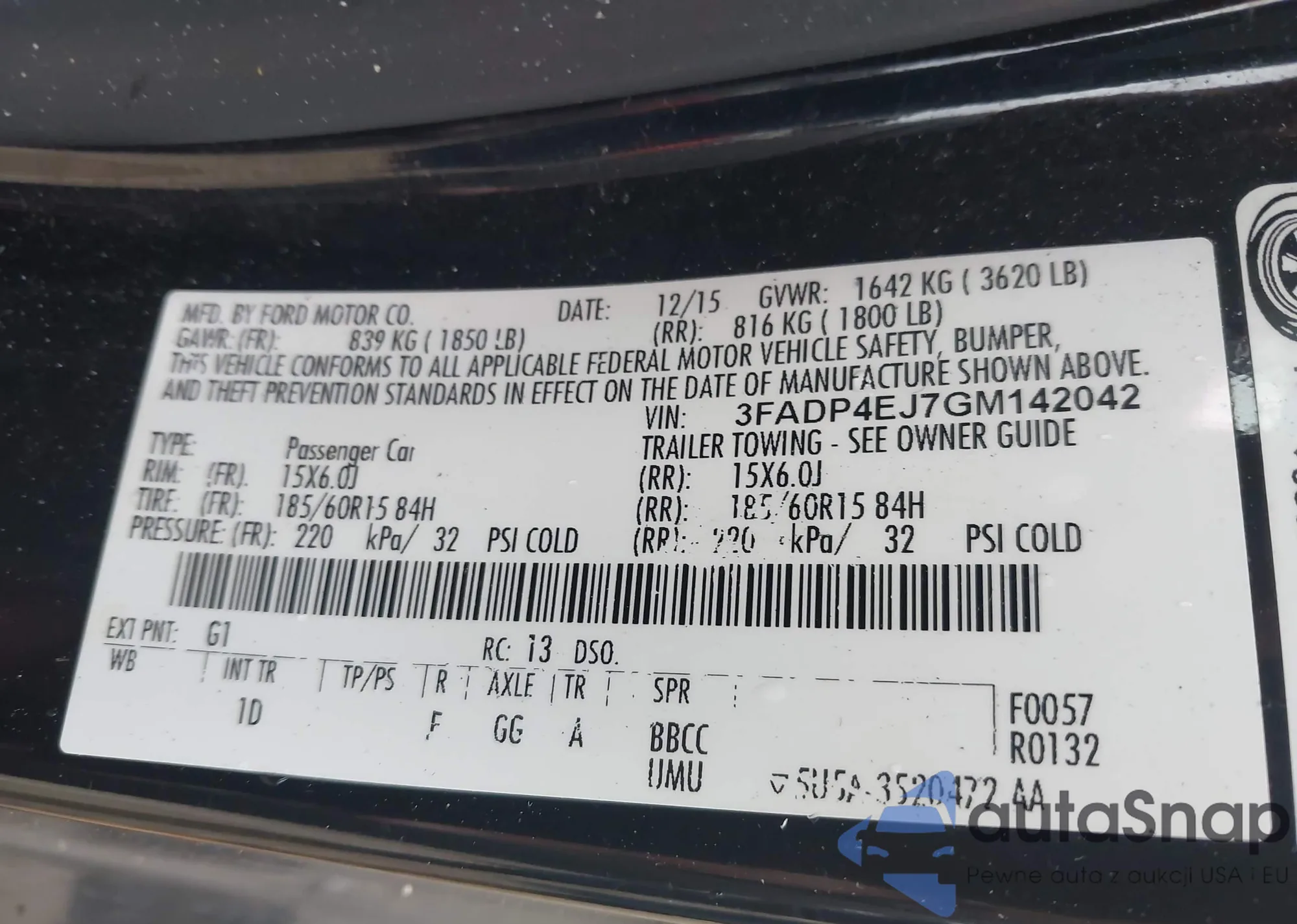• VIN 3FADP4EJ7GM142042
