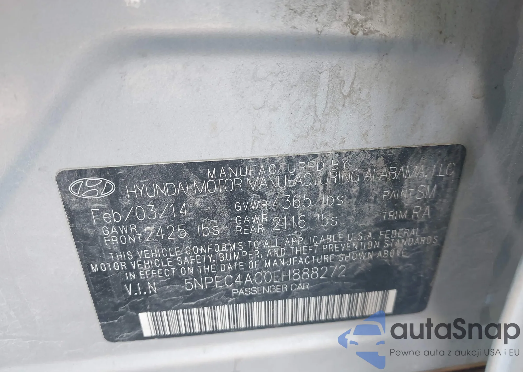 • VIN 5NPEC4AC0EH888272