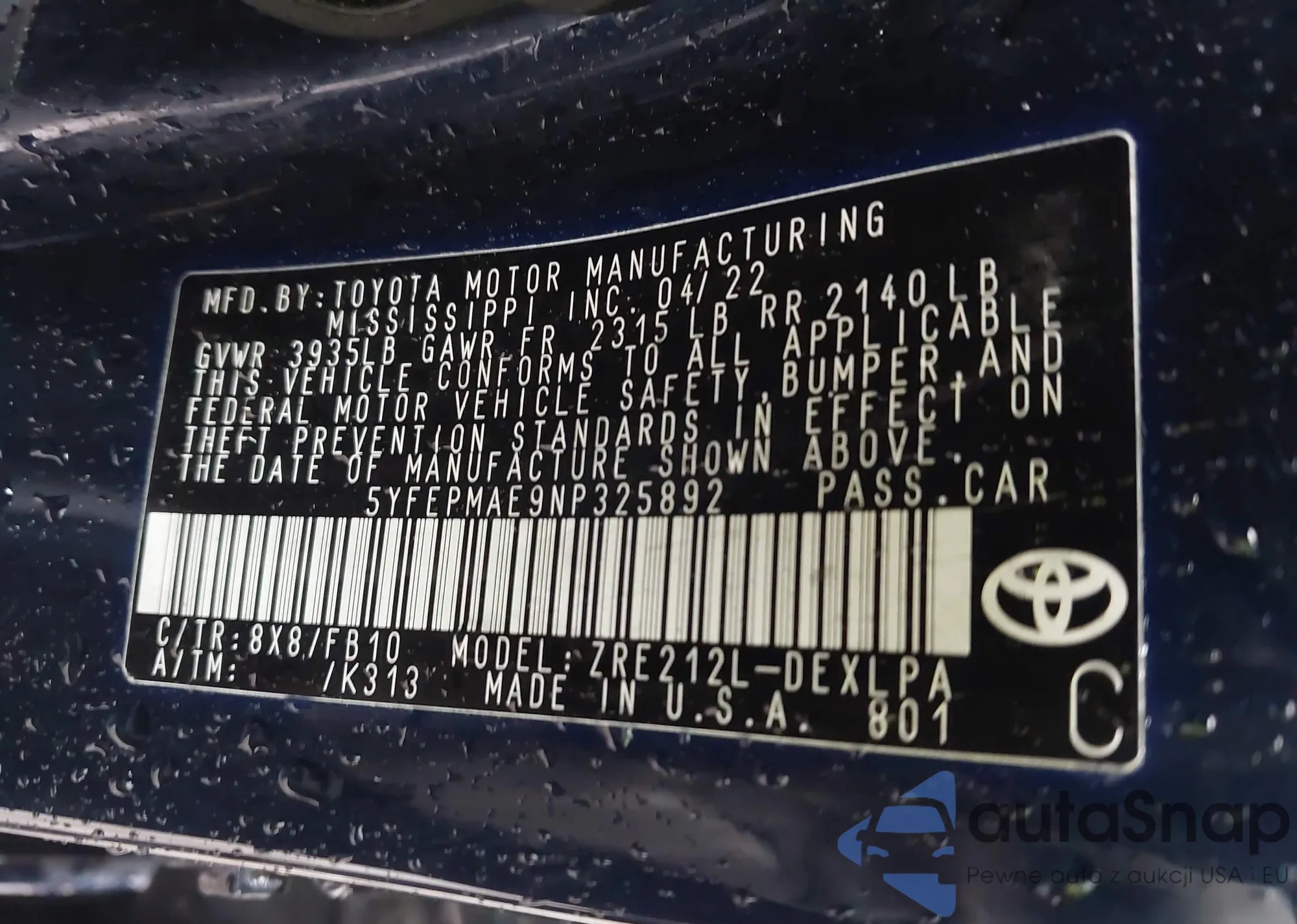 LOT: 43525388 VIN: JTMZFREV1D5001696