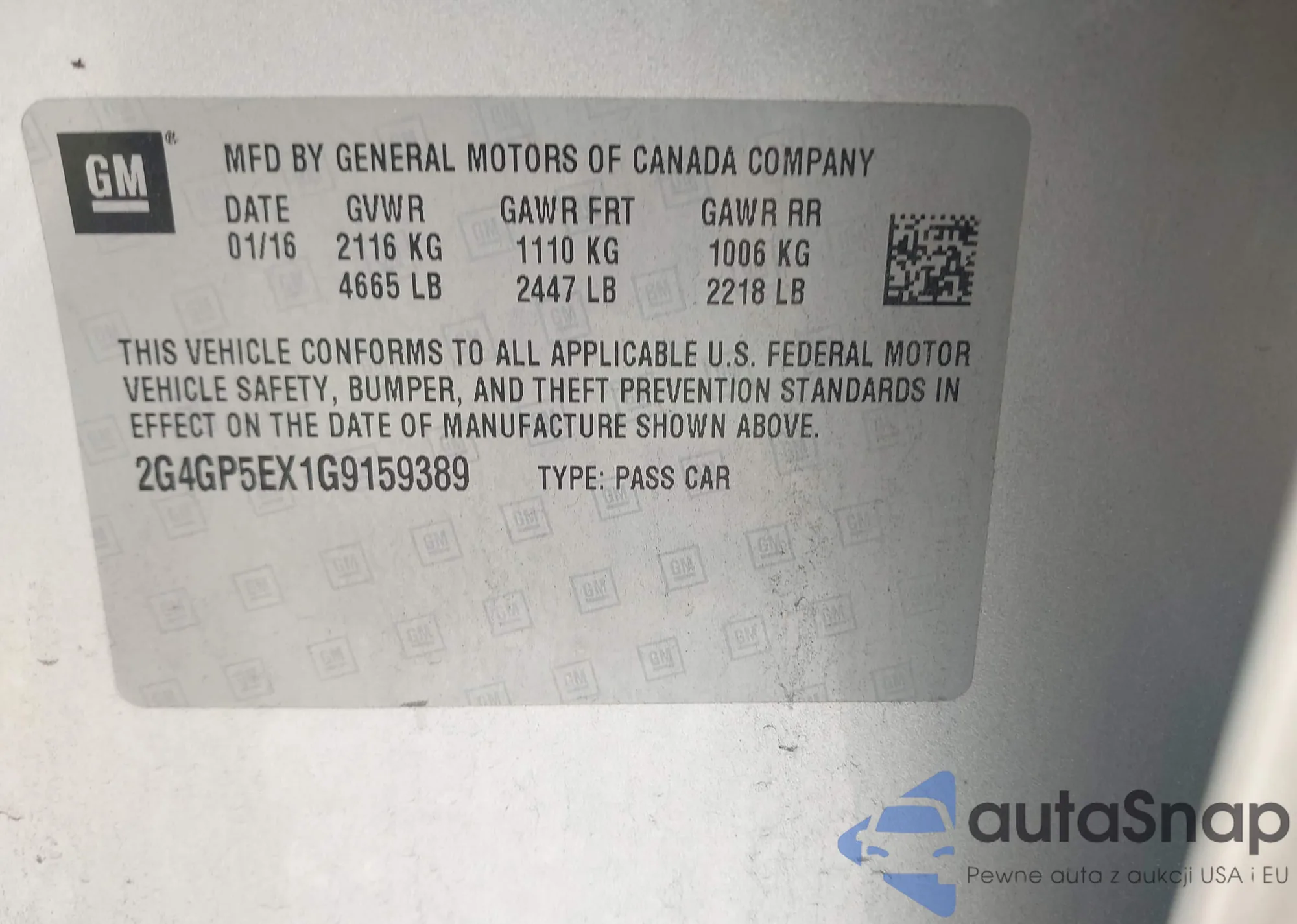 • VIN 2G4GP5EX1G9159389