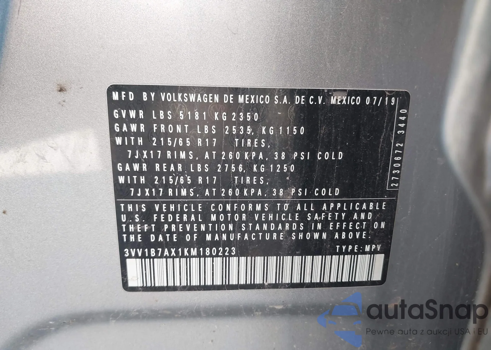 • VIN 3VV1B7AX1KM180223