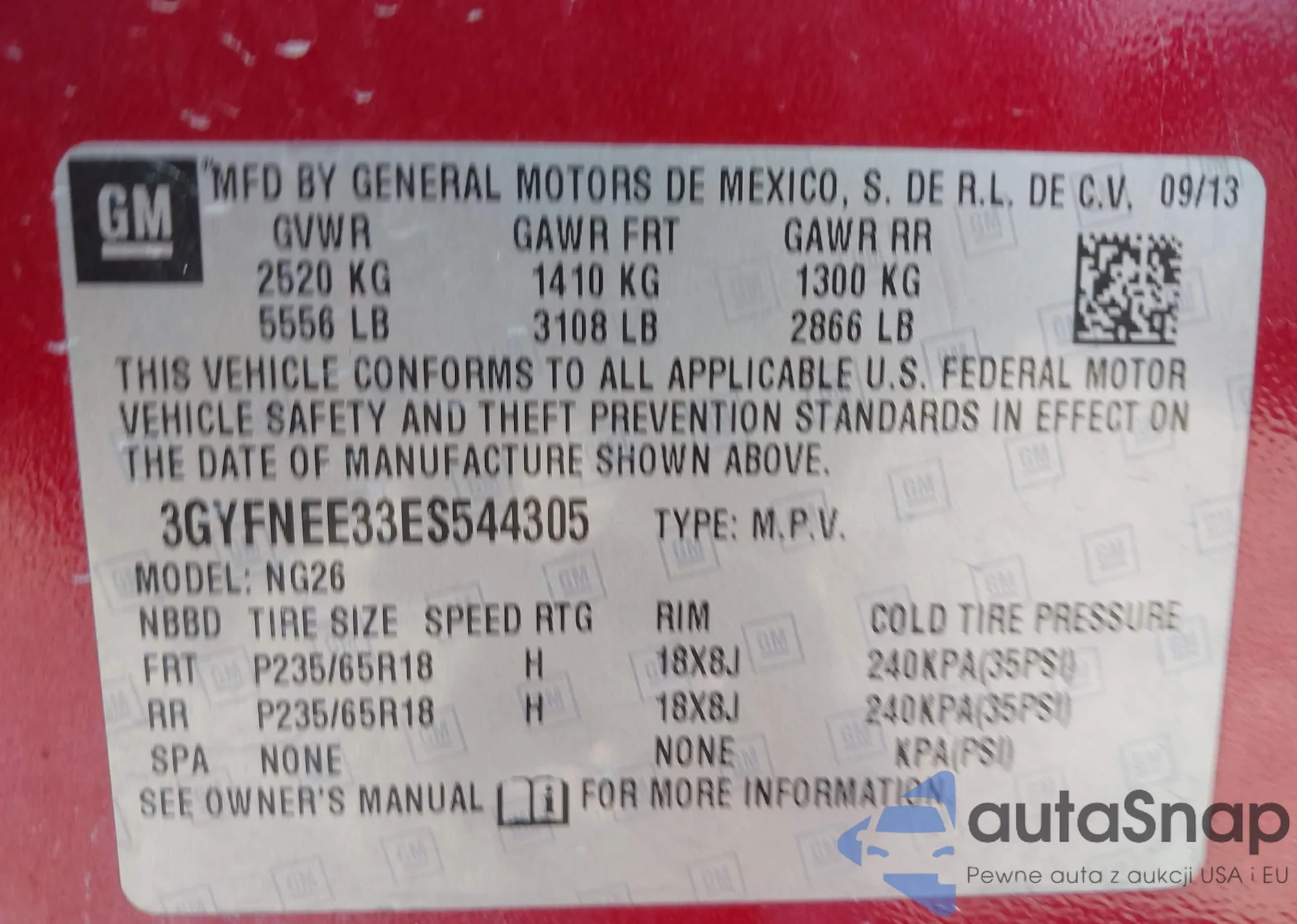 • VIN 3GYFNEE33ES544305