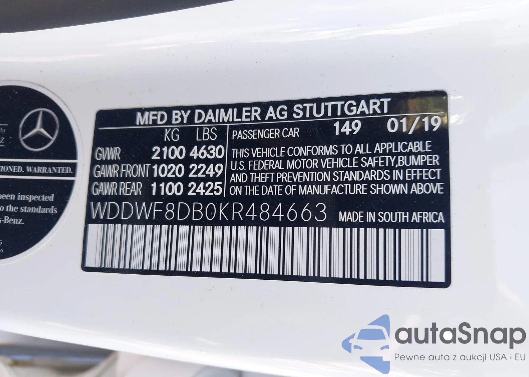 • VIN WDDWF8DB0KR484663