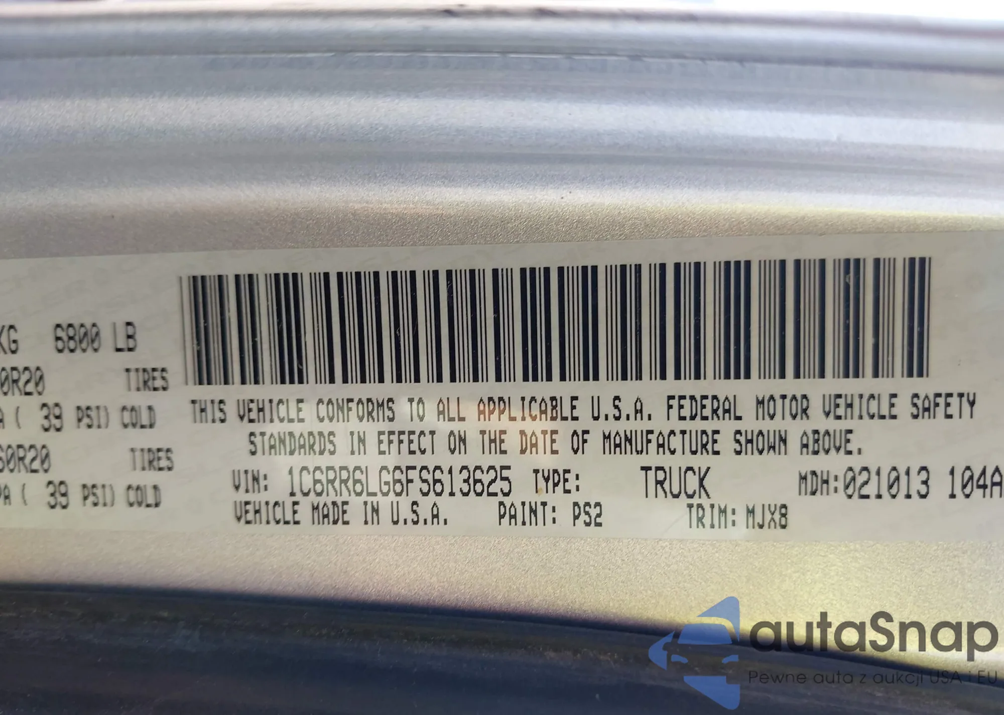 • VIN 1C6RR6LG6FS613625