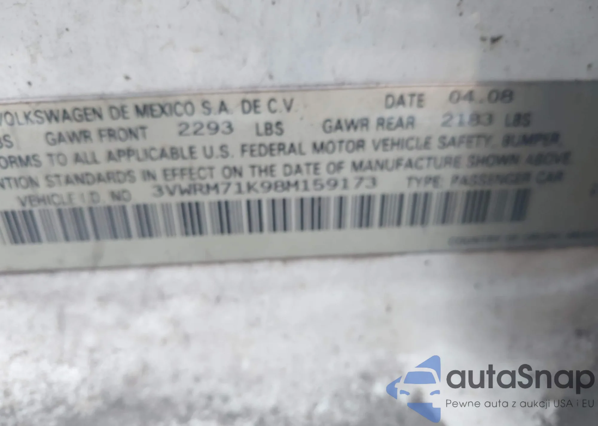 • VIN 3VW6T7AU4LM010718