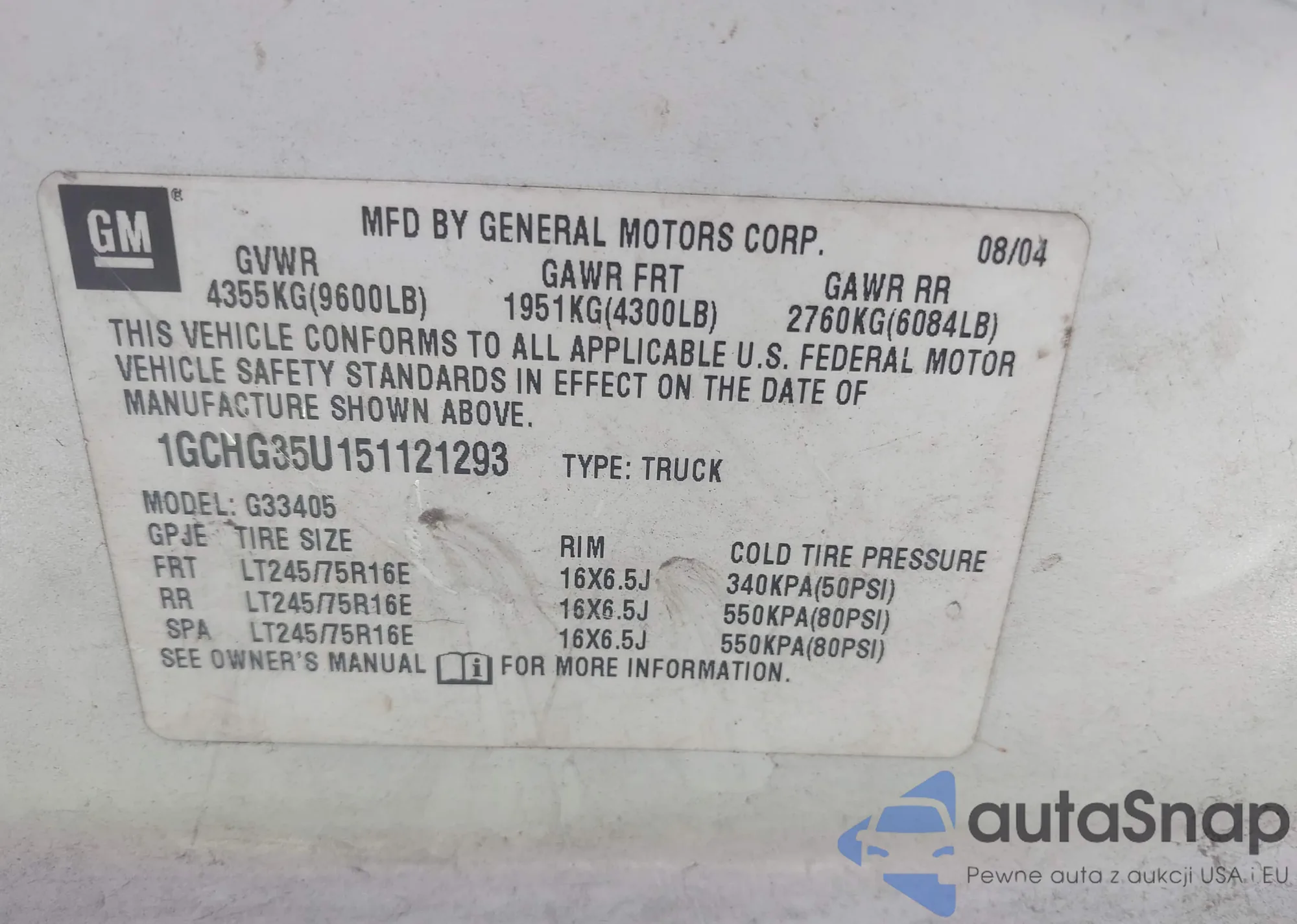 • VIN 1GCHG35U151121293