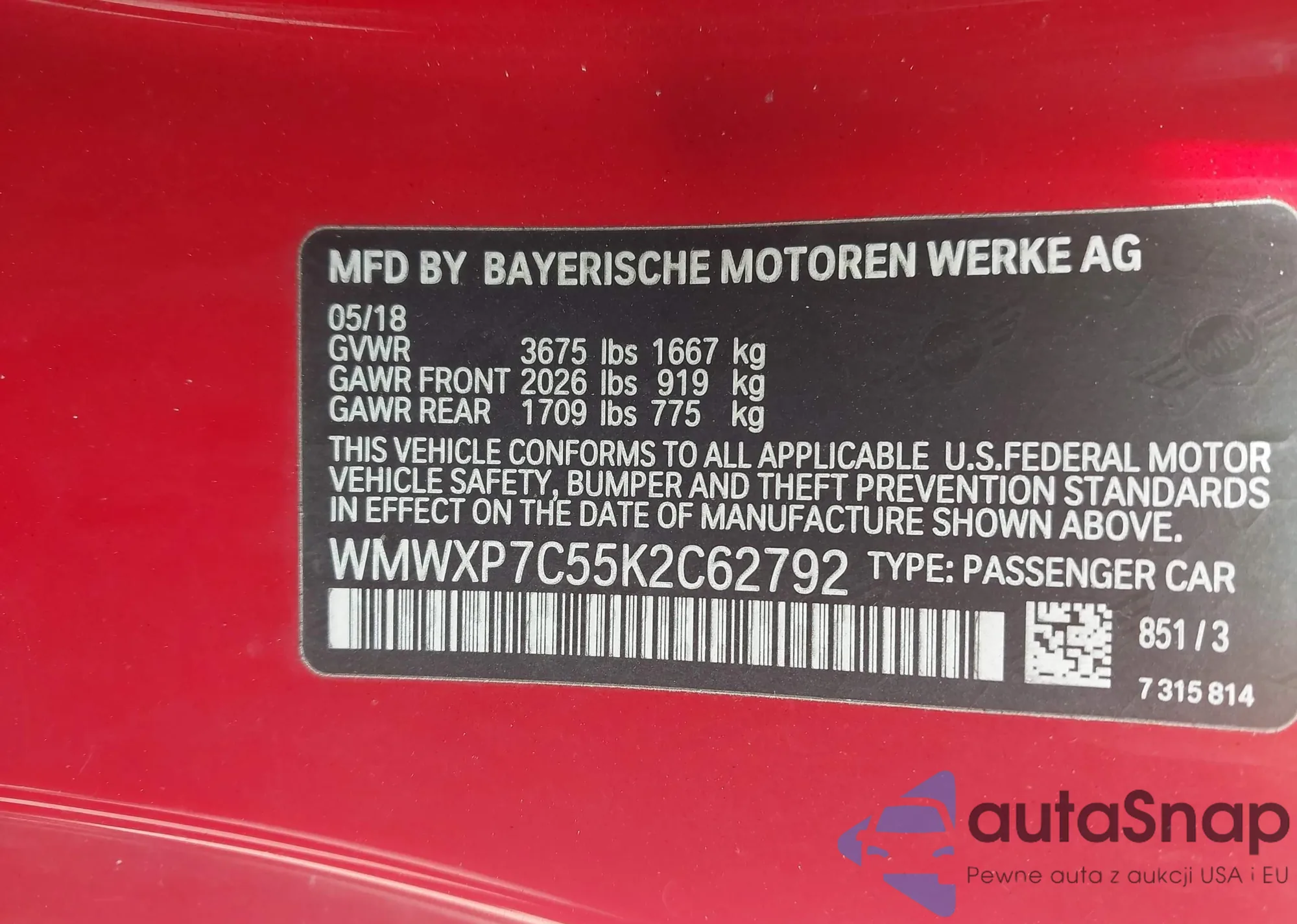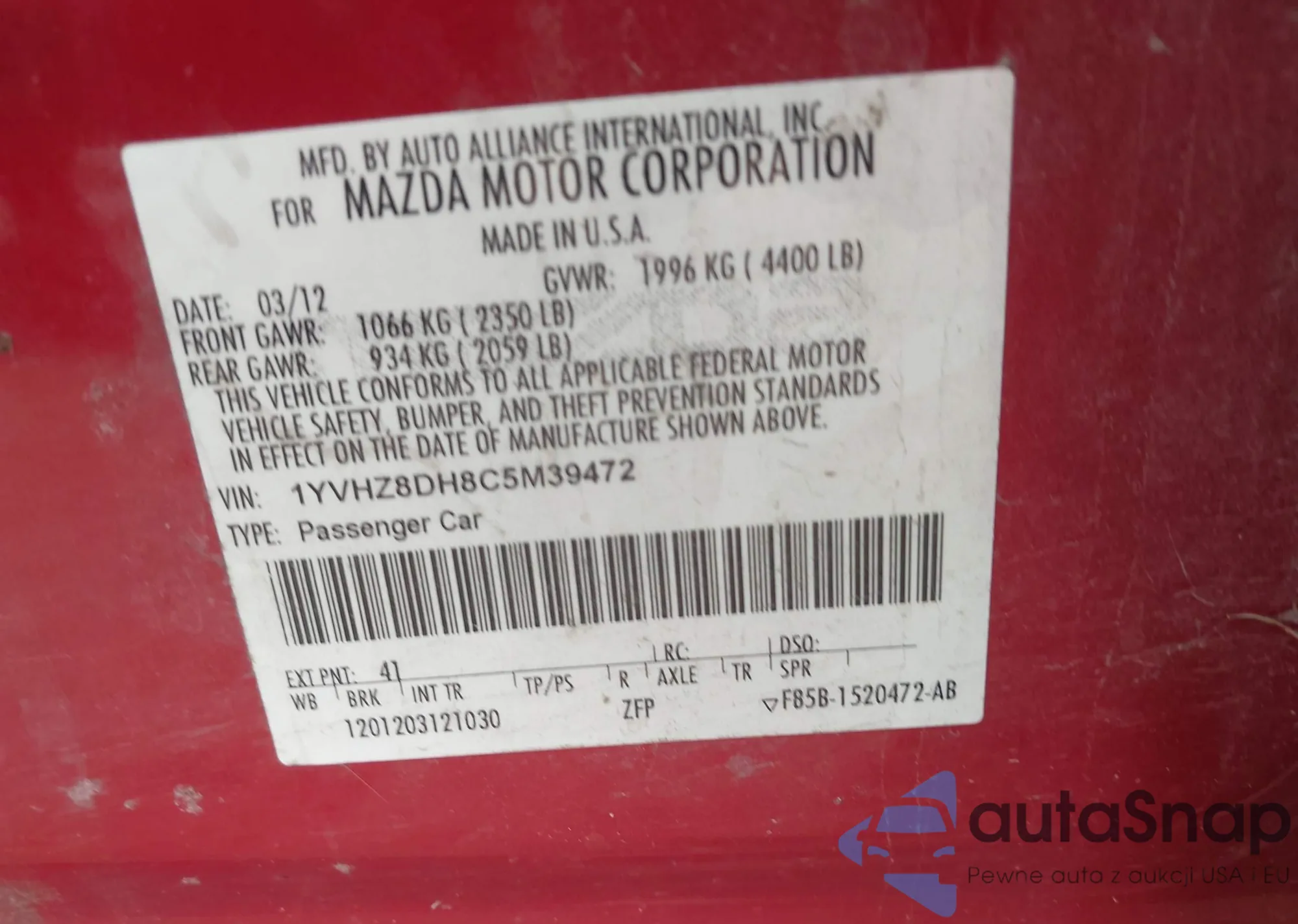• VIN 1YVHZ8DH8C5M39472
