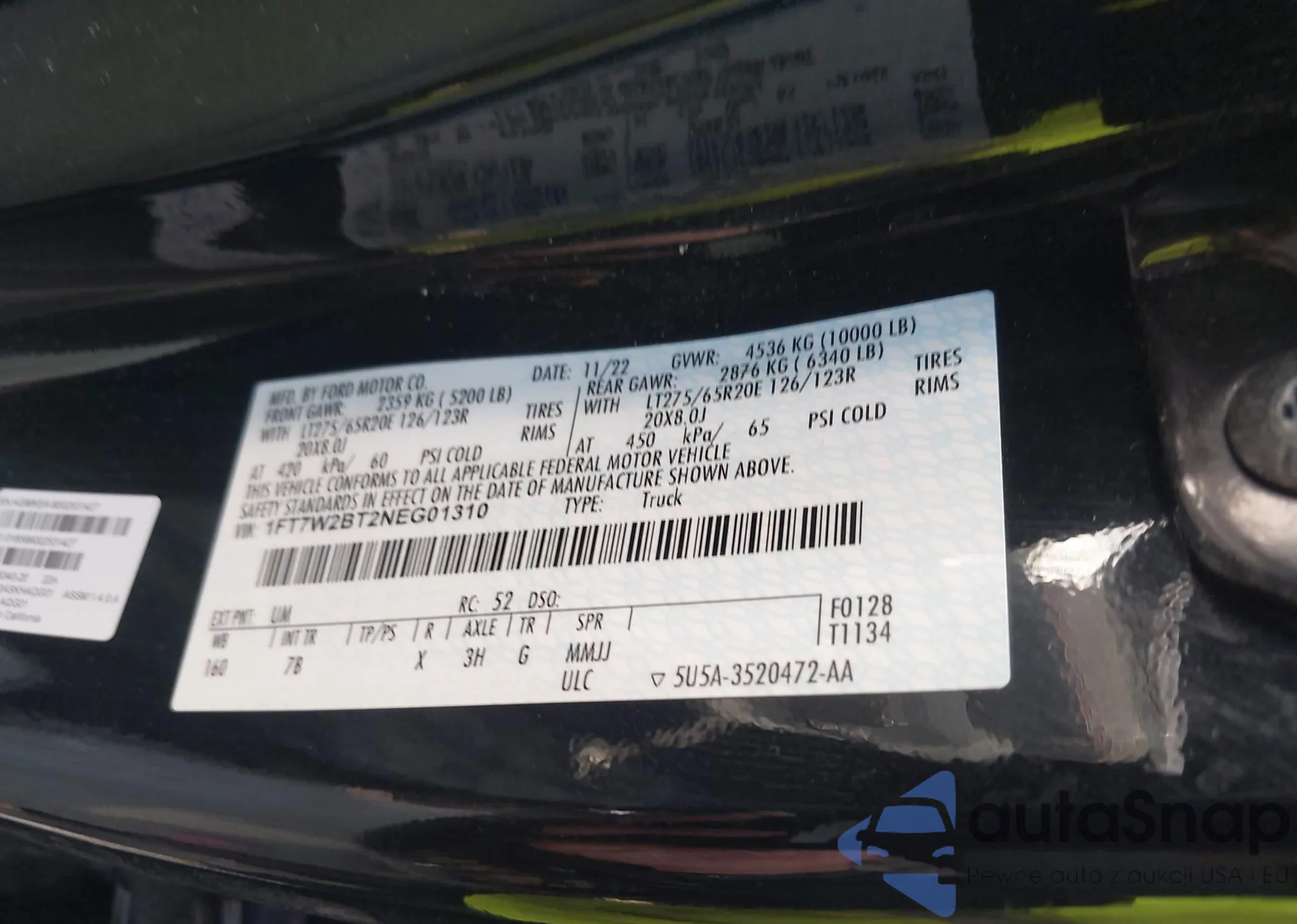 • VIN 1FT7W2BT2NEG01310