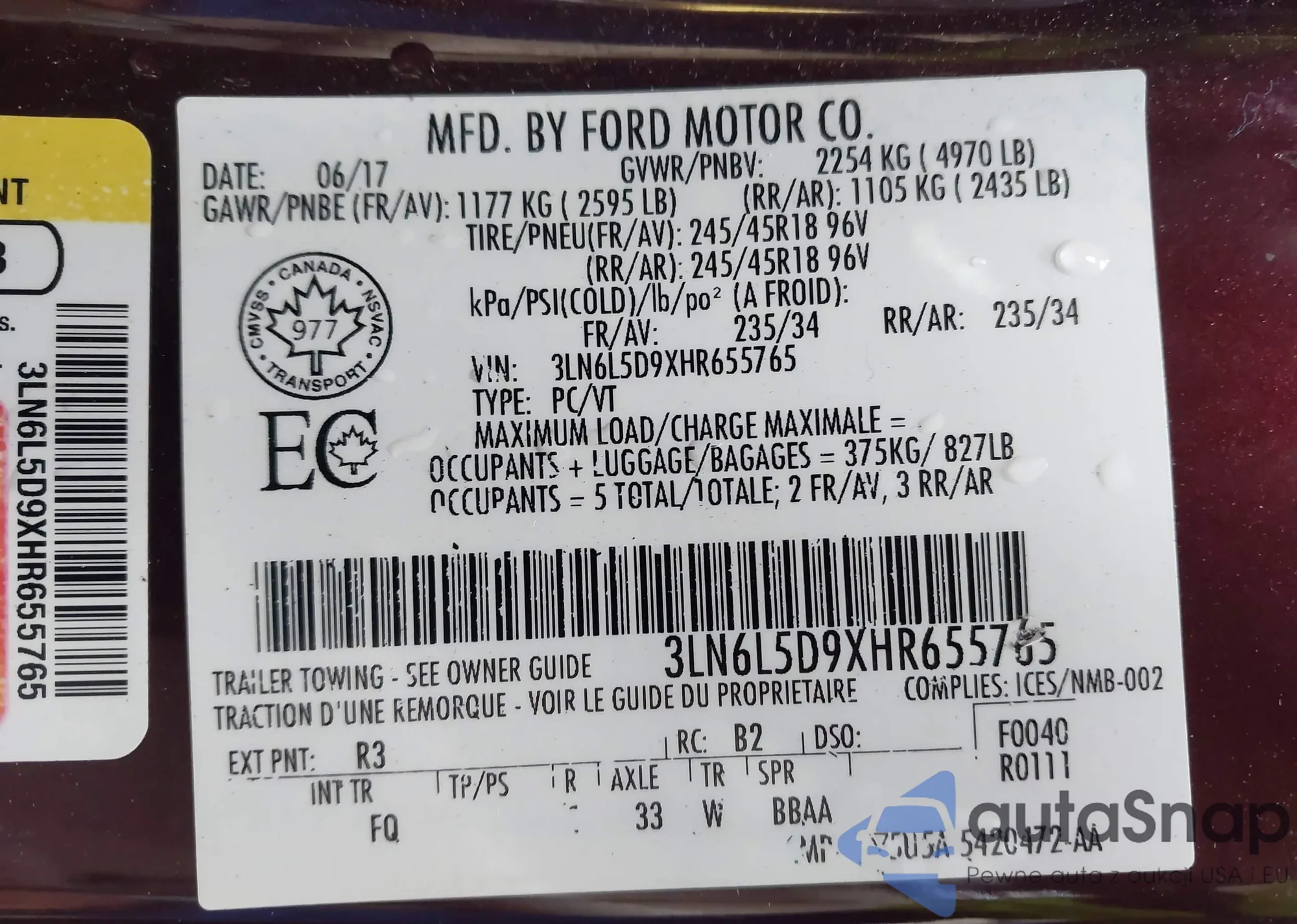 • VIN 3LN6L5D9XHR655765