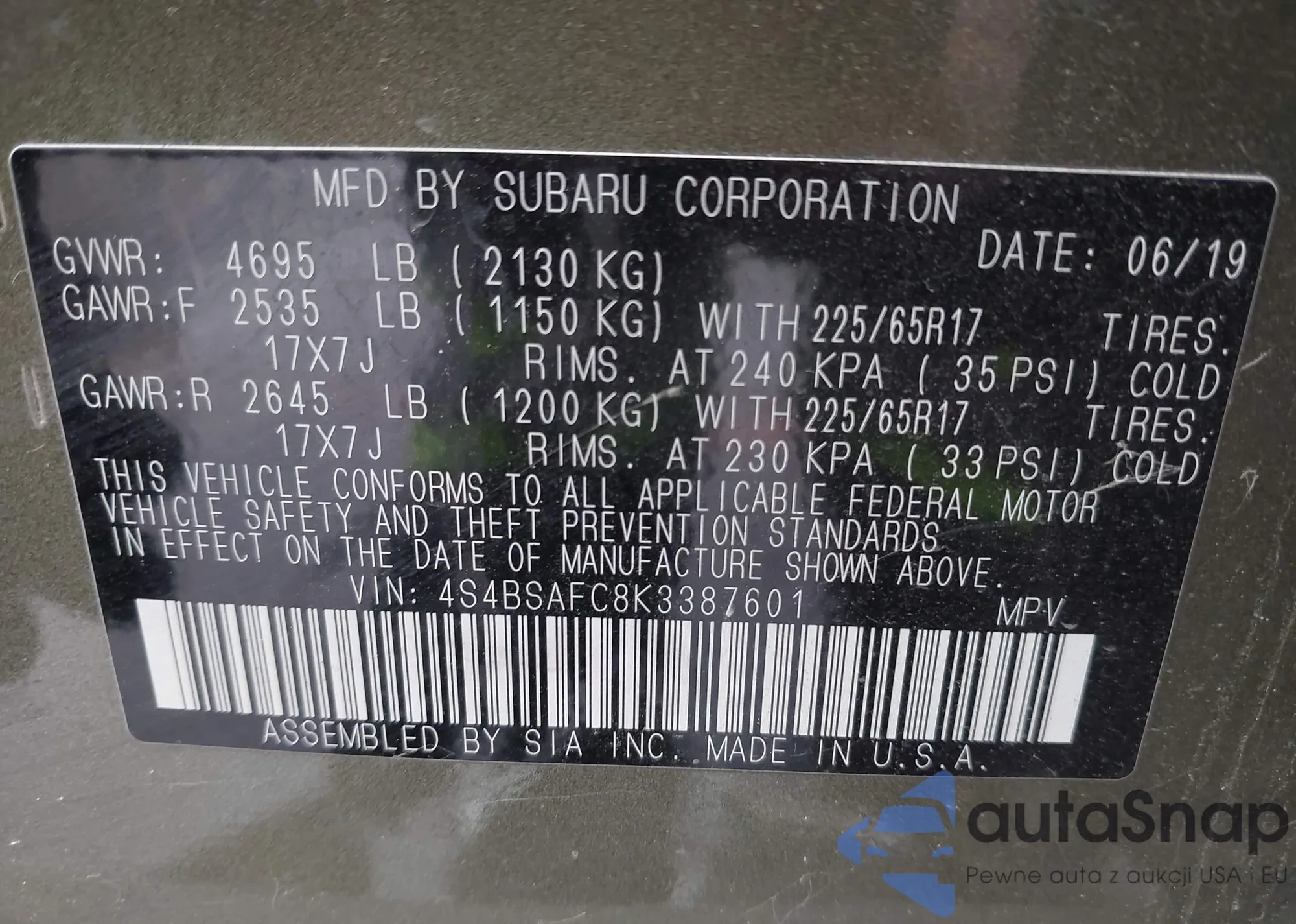 • VIN 5TFSZ5AN0HX050518