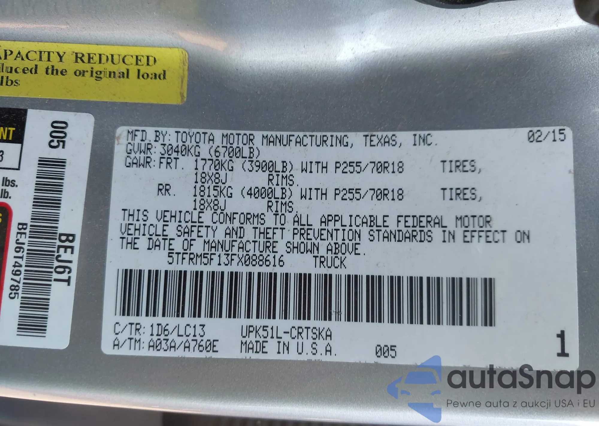 • VIN 5TFRM5F13FX088616