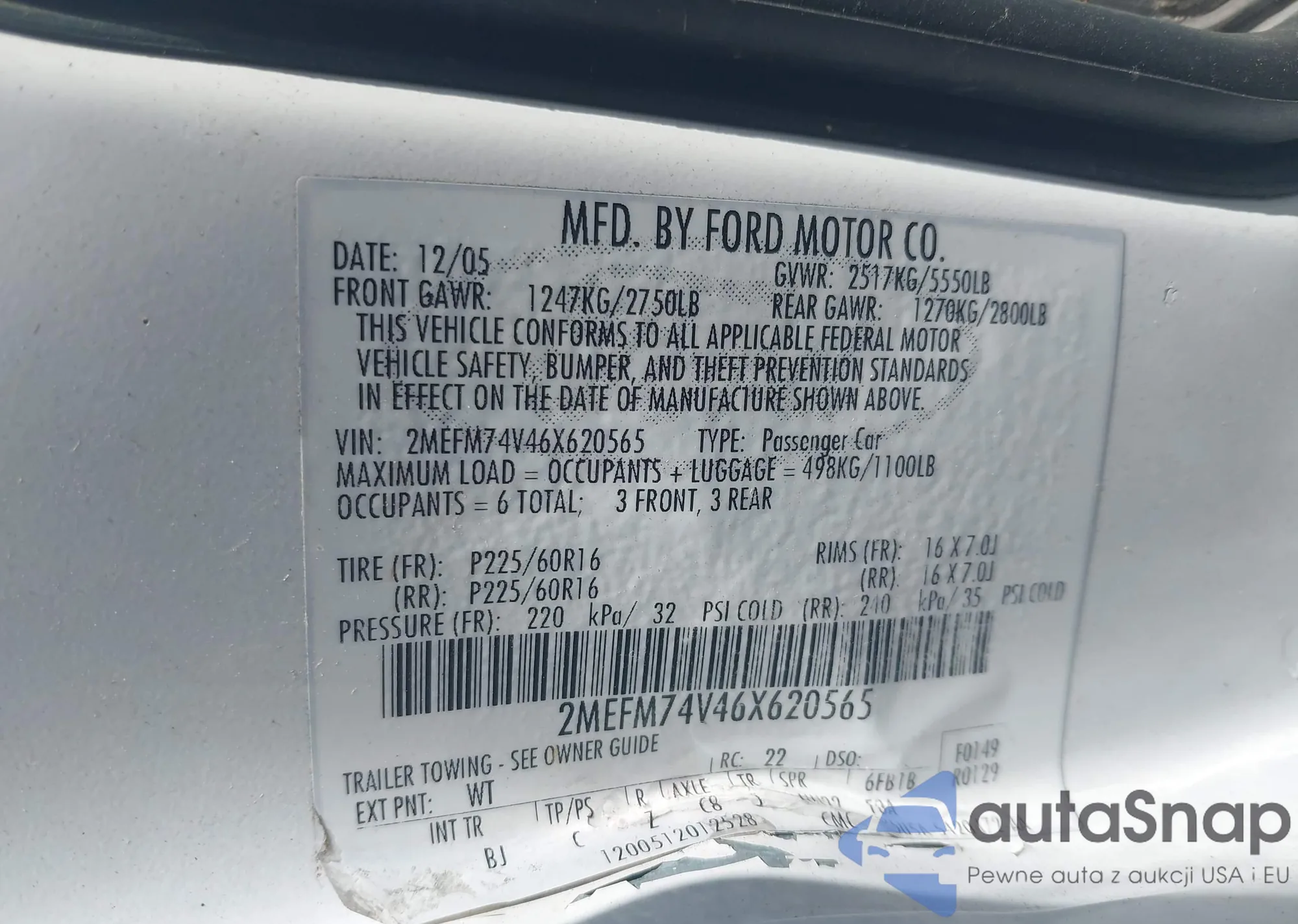 LOT: 43329774 VIN: 2MEFM74V46X620565