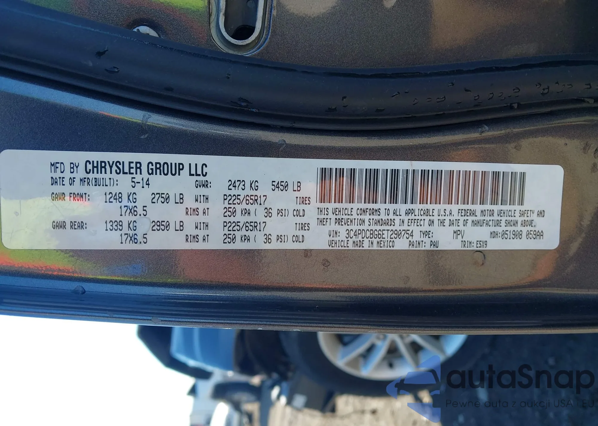 LOT: 43414532 VIN: 3C4PDCBG6ET290754