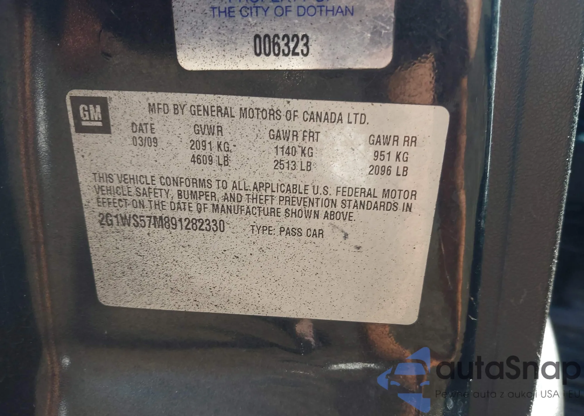LOT: 43385690 VIN: 2G1WT55N089208988