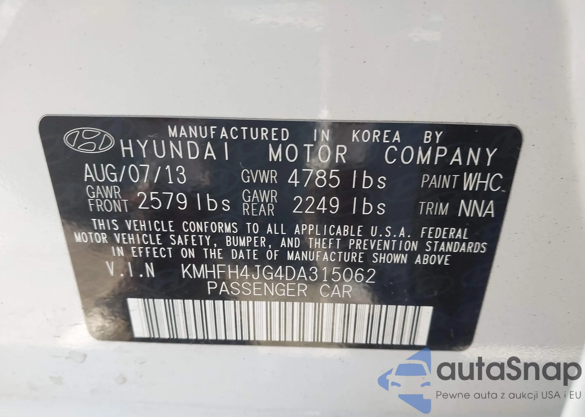 LOT: 43609196 VIN: KMHC75LJXLU061827