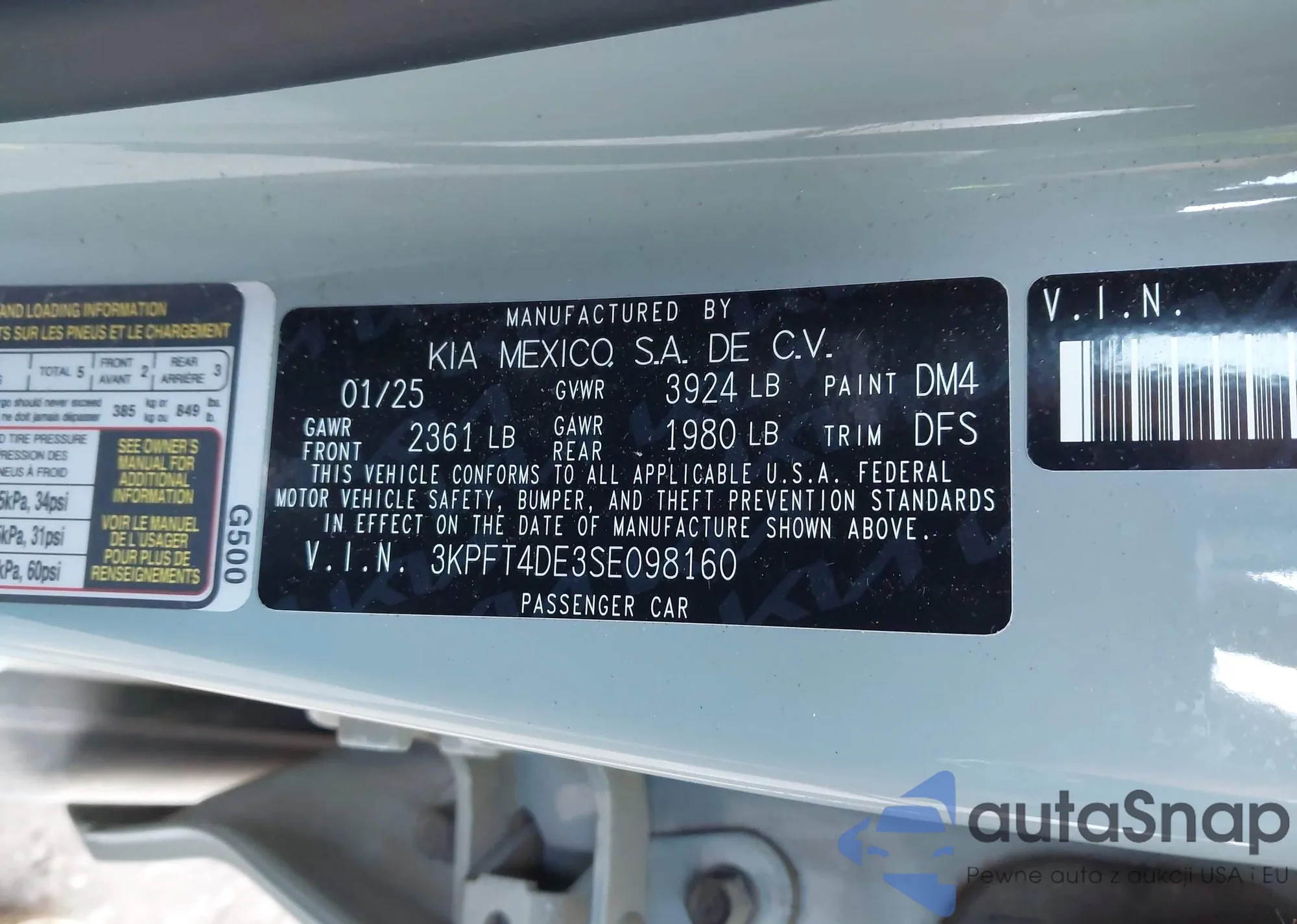 • VIN 3KPFT4DE3SE098160