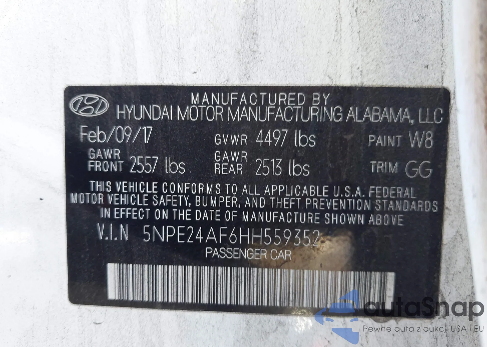 • VIN 5NPEC4AB3CH439172