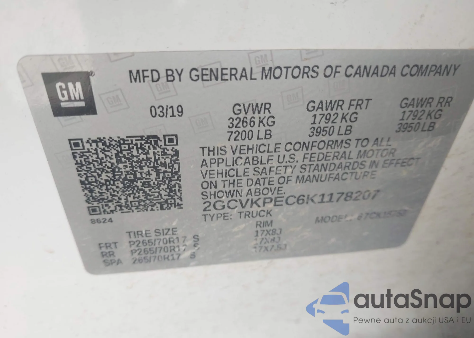 • VIN 2GCVKPEC6K1178207