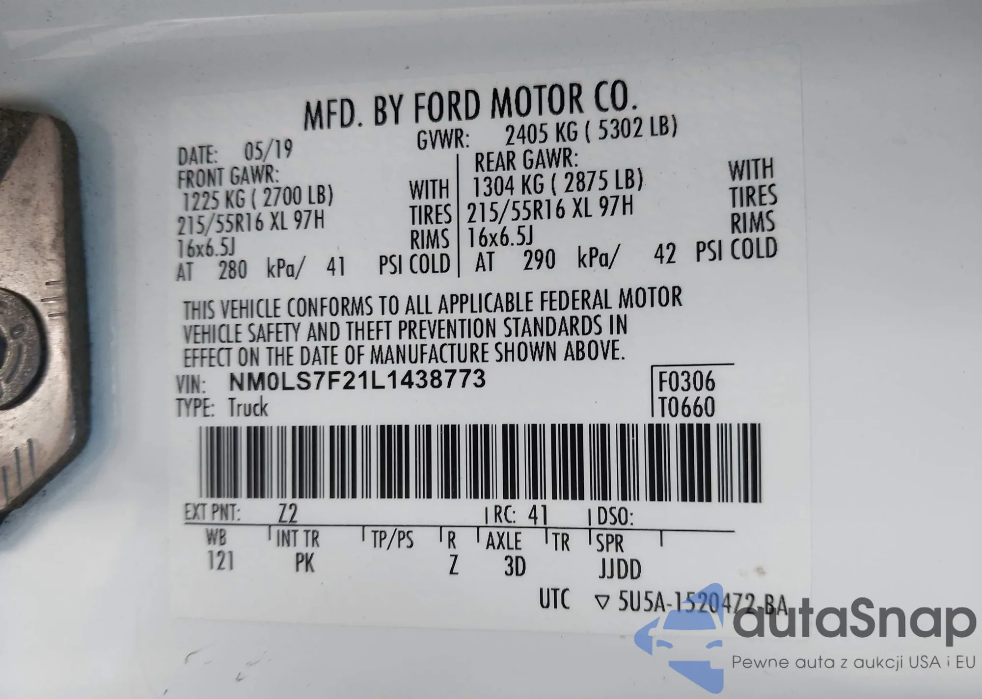 LOT: 43685809 VIN: NM0LS7F21L1438773