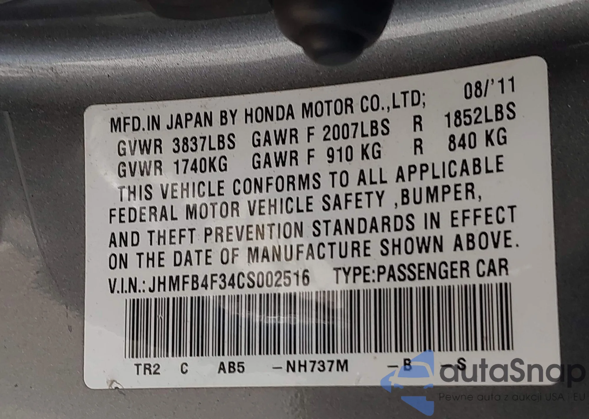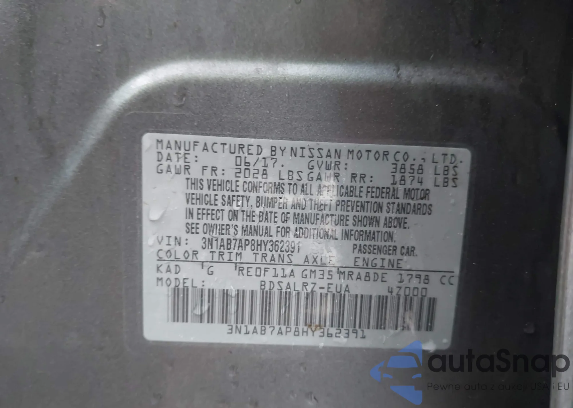 • VIN 1N4BL3AP8HC291862