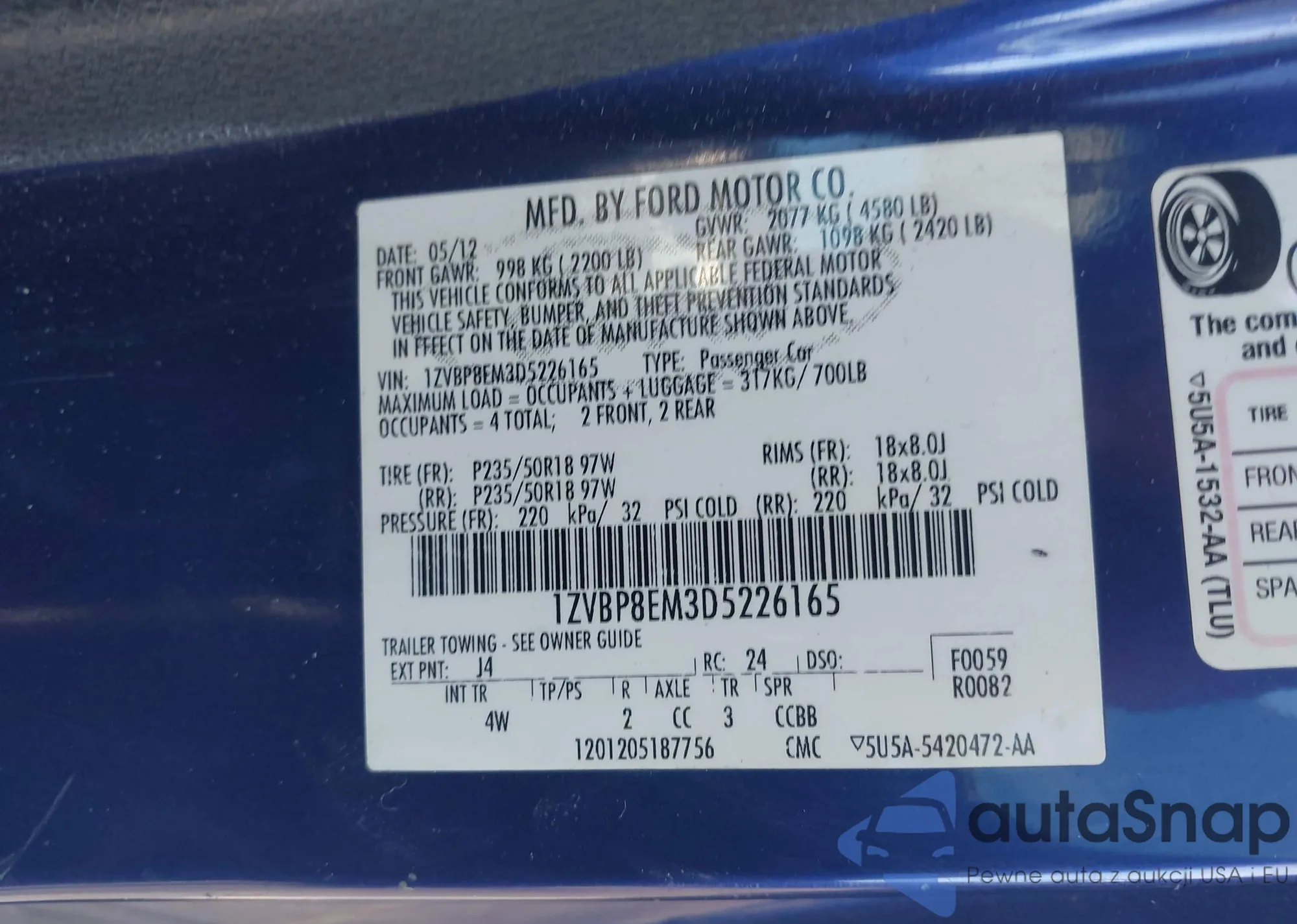 • VIN 1ZVBP8EM3D5226165