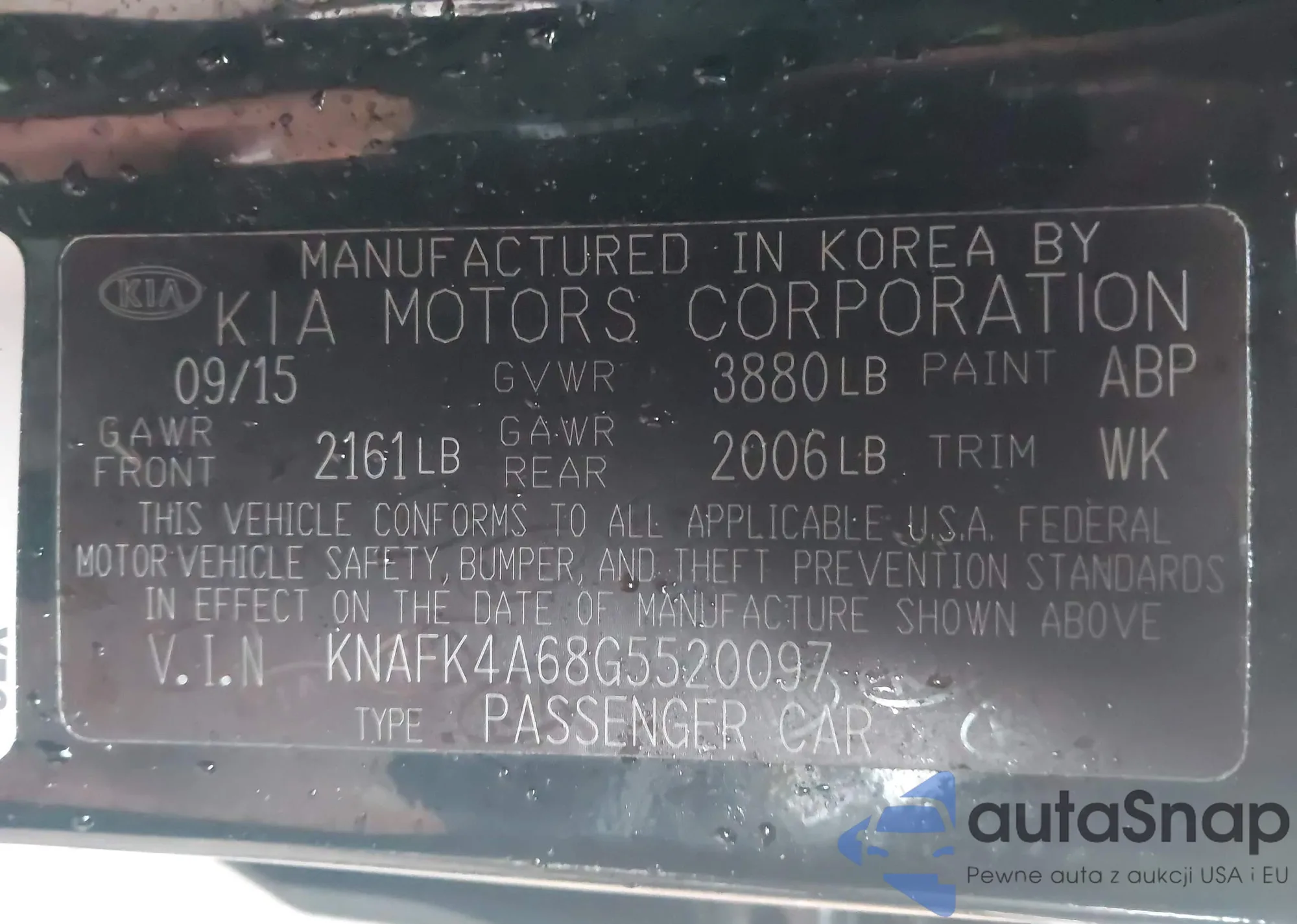 LOT: 43731568 VIN: KNAFK4A68G5520097