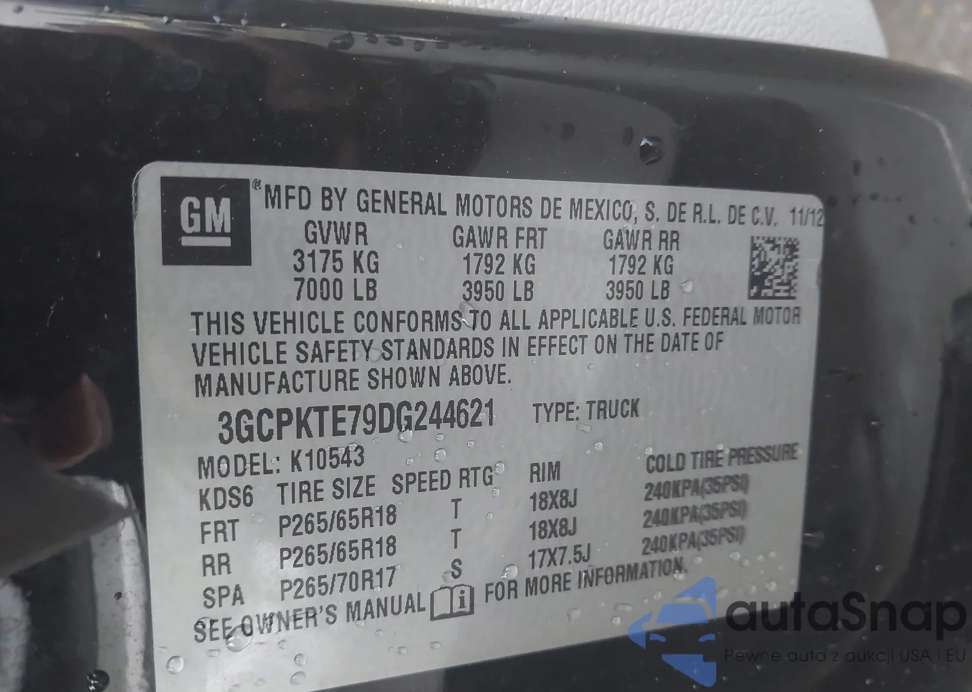 • VIN 3GCPKTE79DG244621