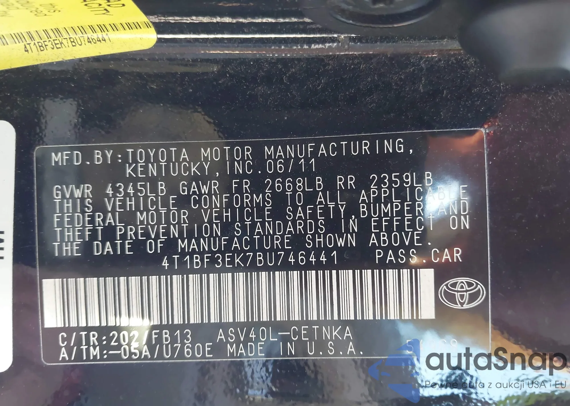 • VIN 4T4BF3EK8AR006594