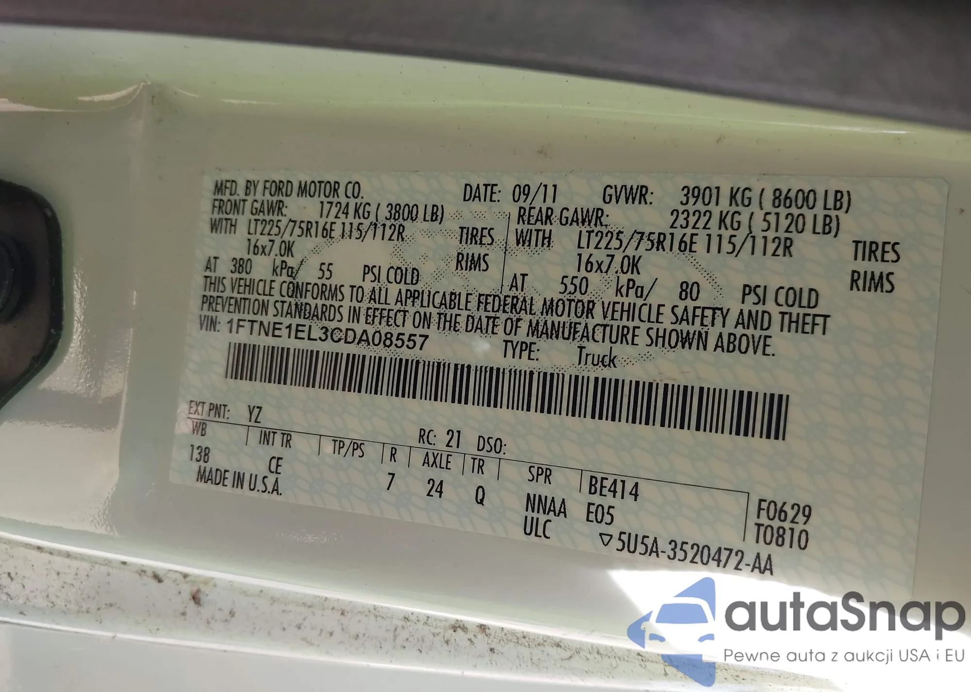 • VIN 1FTNE1EL3CDA08557