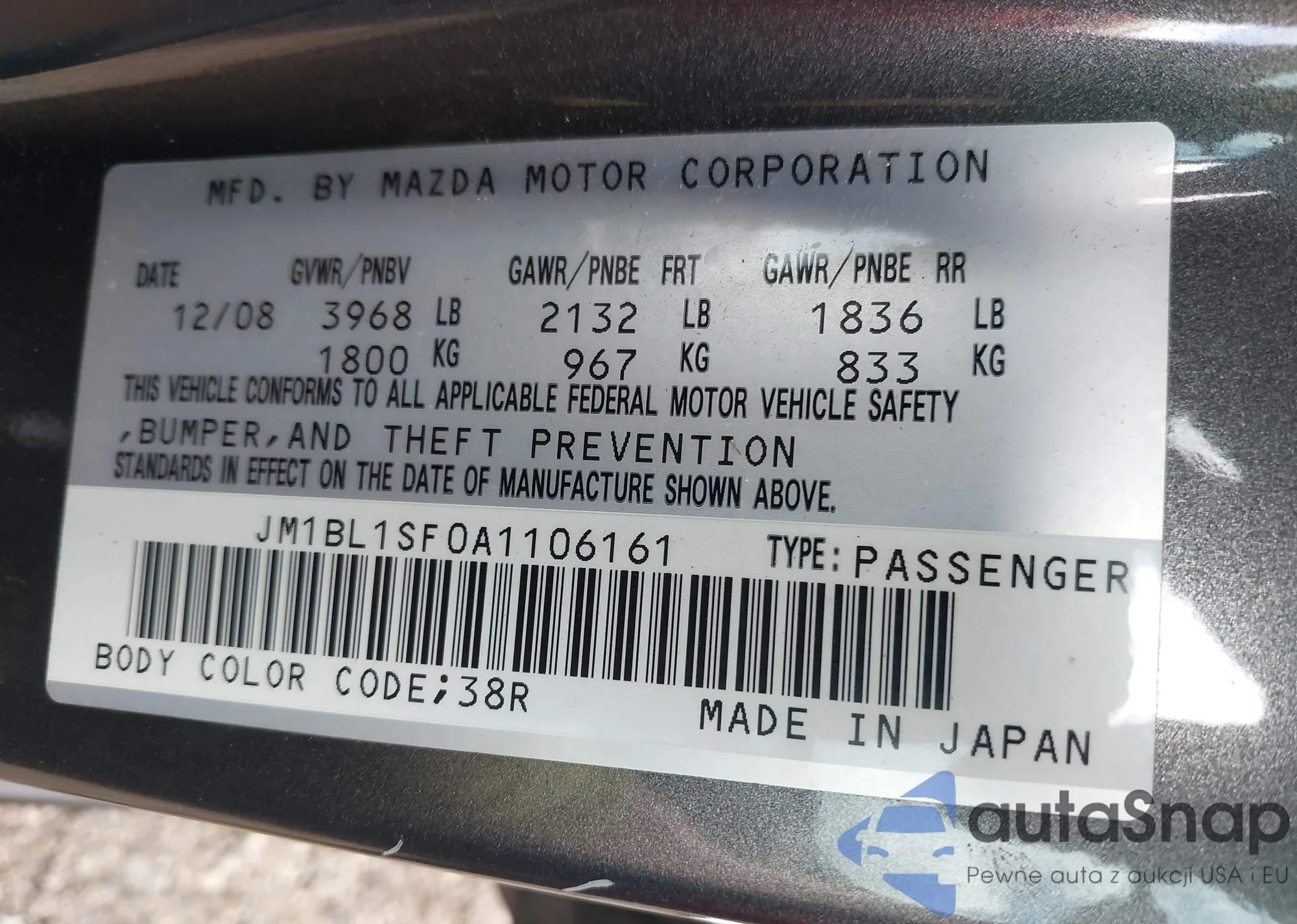 LOT: 42183234 VIN: JM1BL1SF0A1106161