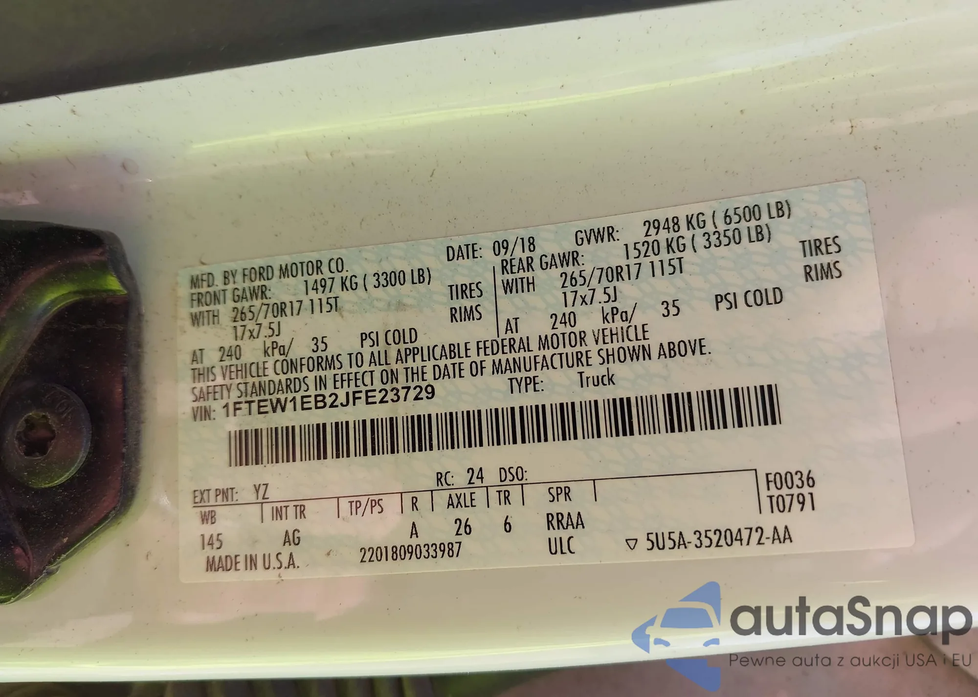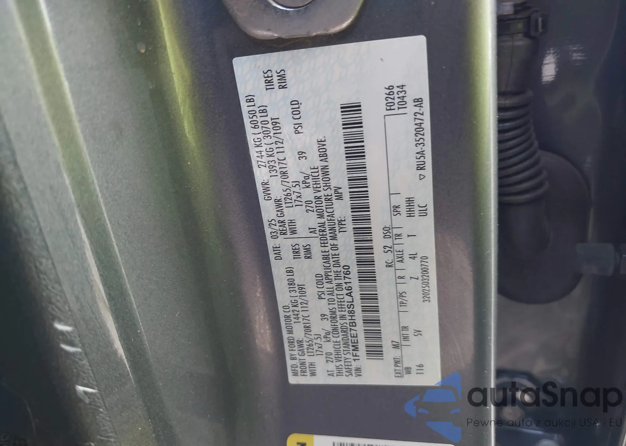 • VIN 1FMEE7BH8SLA61760
