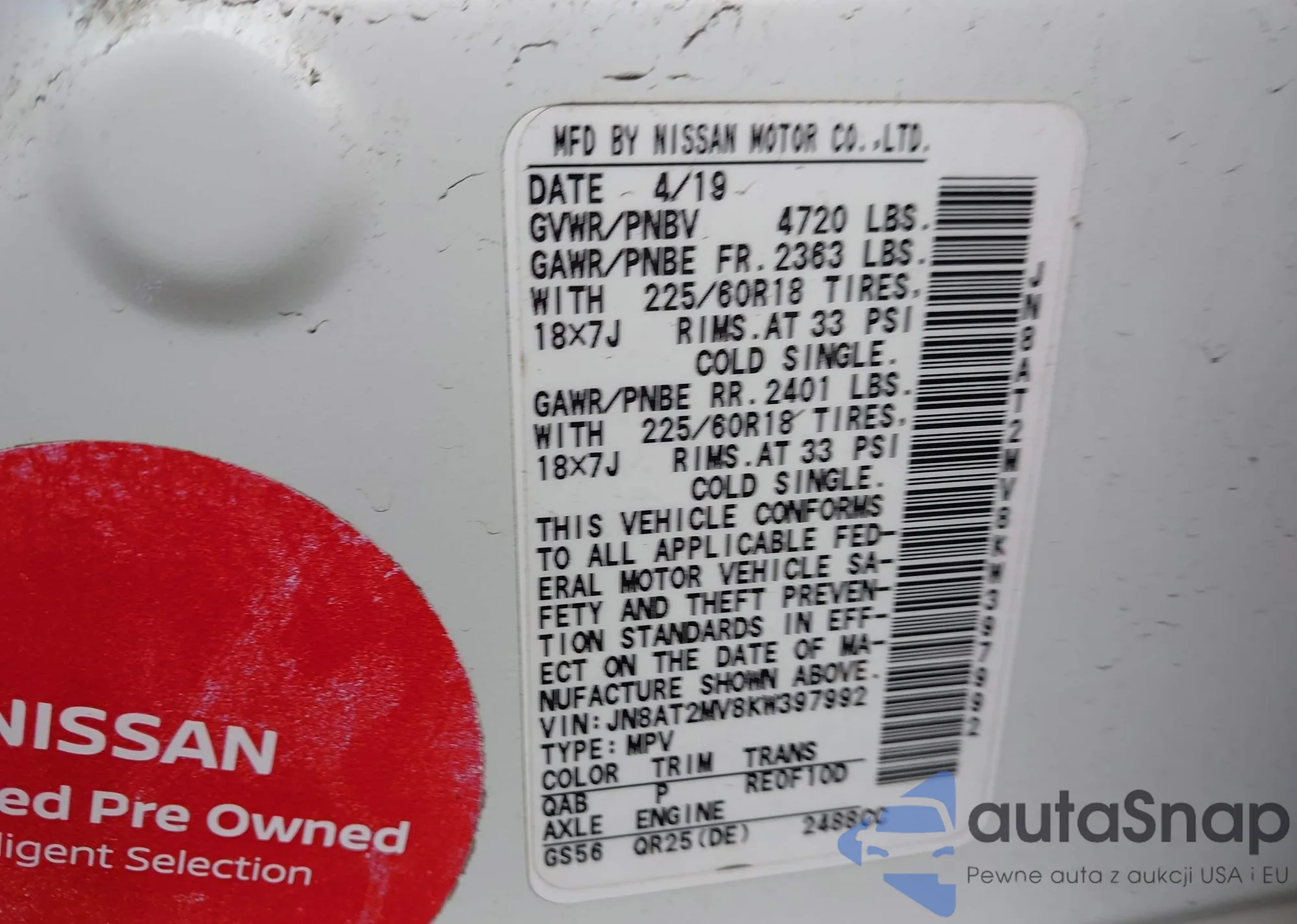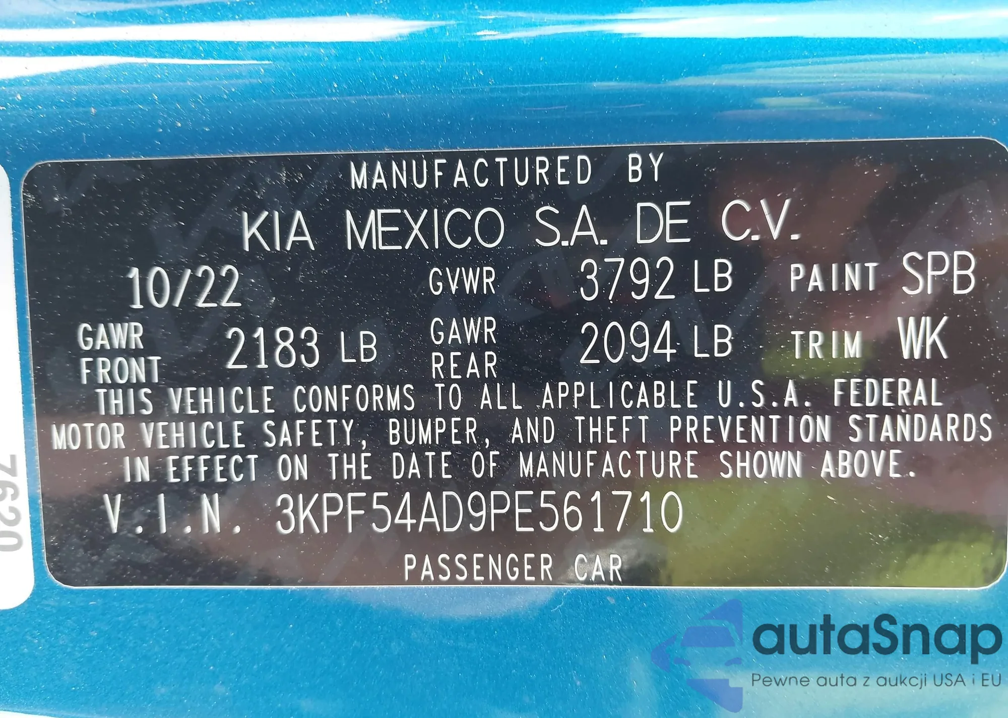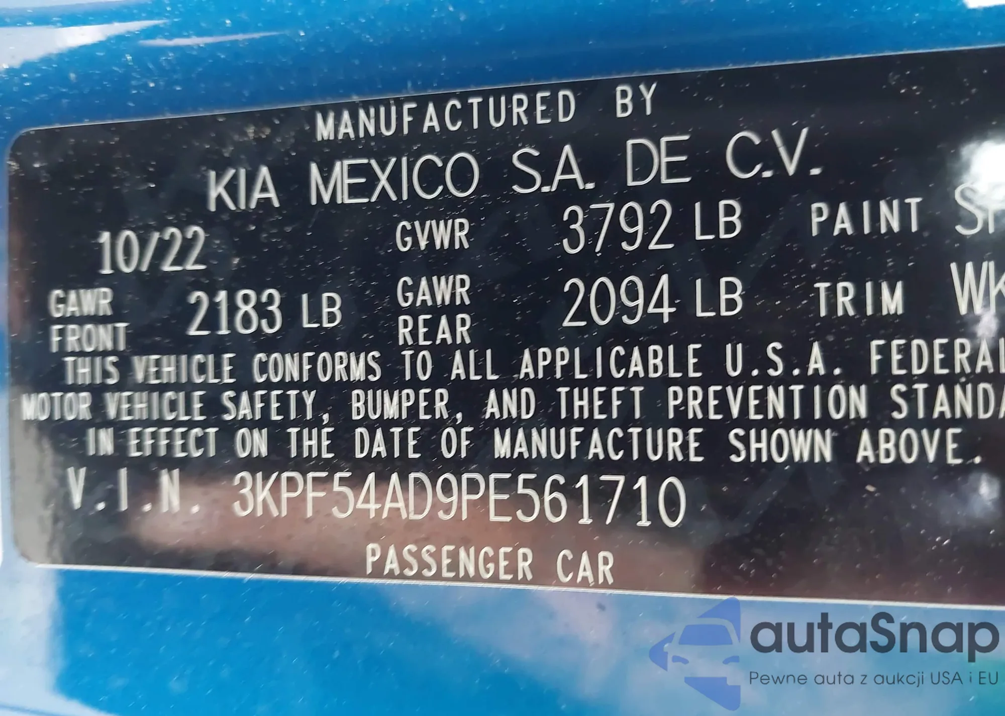 • VIN 3KPF54AD9PE561710