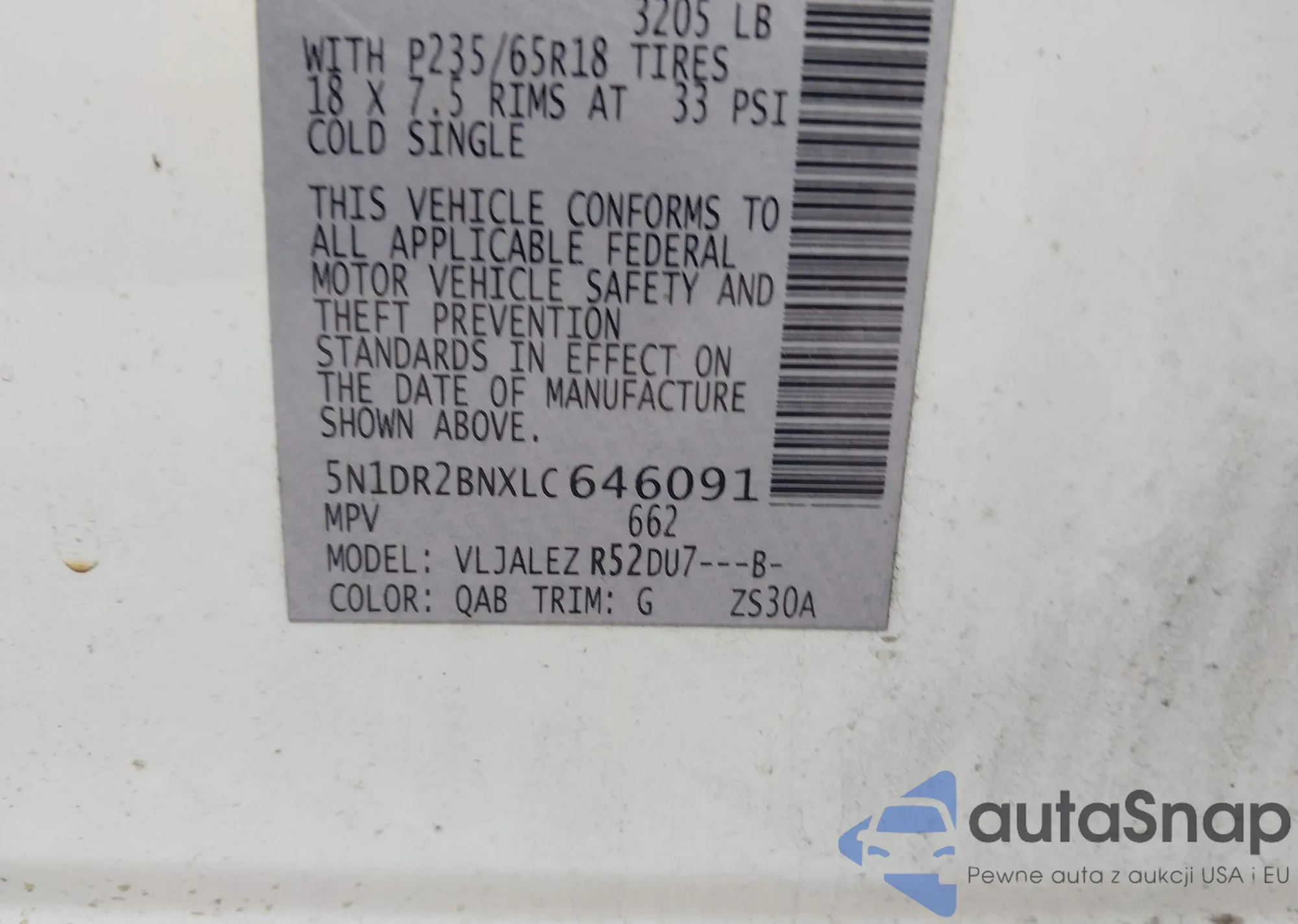 LOT: 42824952 VIN: 5N1DR2BNXLC646091